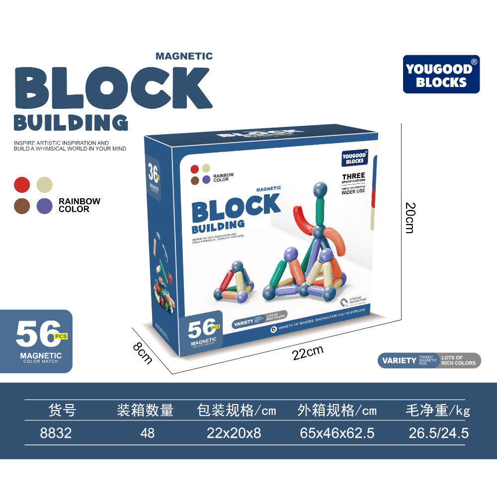 Toys Kingdom Bricks Kingdom Set 56 Pcs Magnetic Sticks - Mix Kids Toy Toys Block Bricks Set Mainan Menyusun Balok Permai