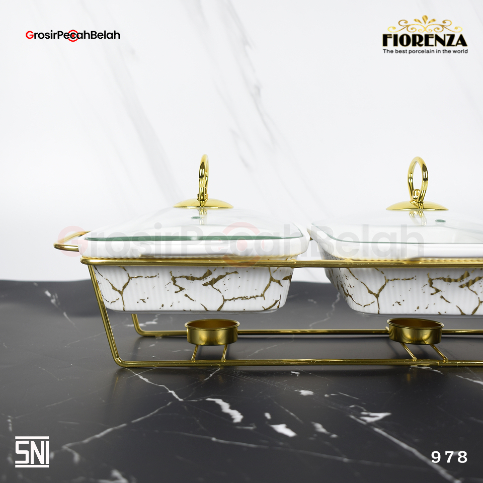 Fiorenza - Prasmanan Wadah Saji Penghangat Makanan Keramik Set Casserole | Tempat Basi Elegan Motif Marbel Lining 60lld5