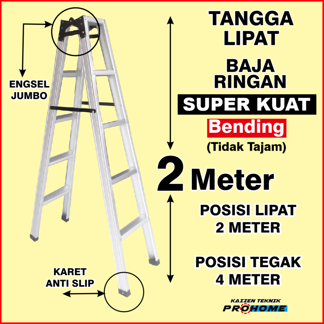 Tangga Lipat Super Kuat Dan Aman - Versi Upgrade Tidak Tajam 2 Meter Bahan Baja