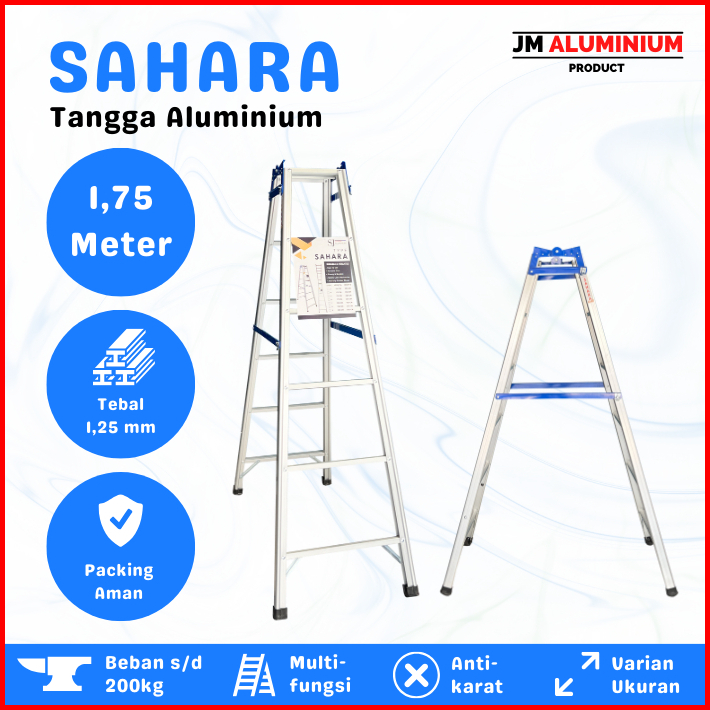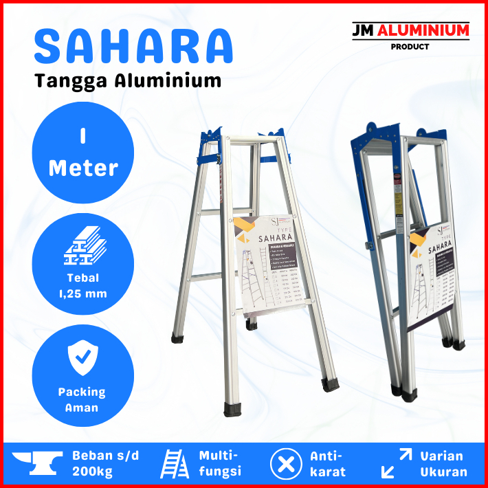 Khusus - Tangga Lipat Aluminium Ukuran 1 - 2 Meter Tipe Sahara Biru Tebal 1 25 Mm Aluminium Top Quality Kuat Kokoh Anti