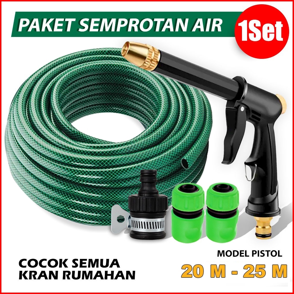 Amini Selang Air Paketan Cuci Motor 30 Meter Selang Air Taman Hijau Anti Lumut Komplit Dengan Konektor Selang Air Taman