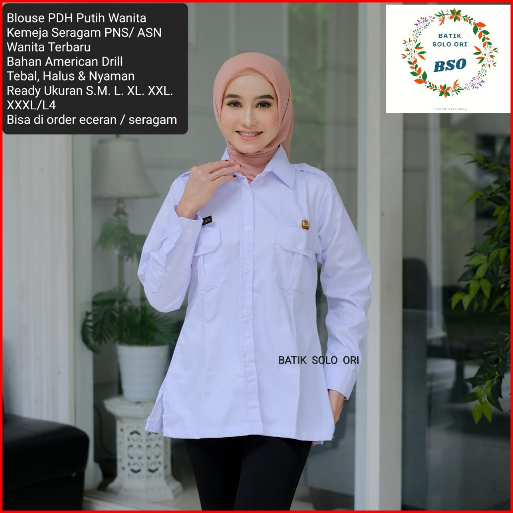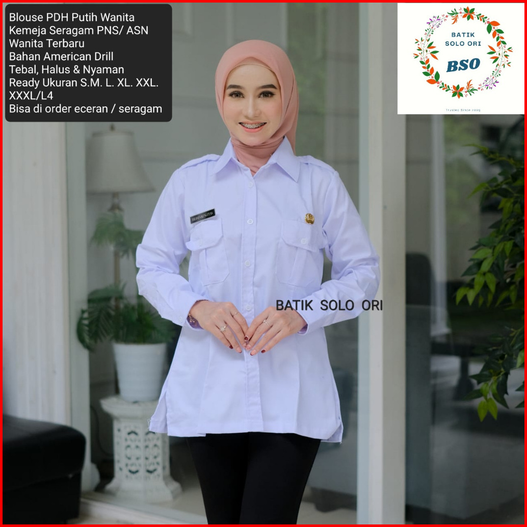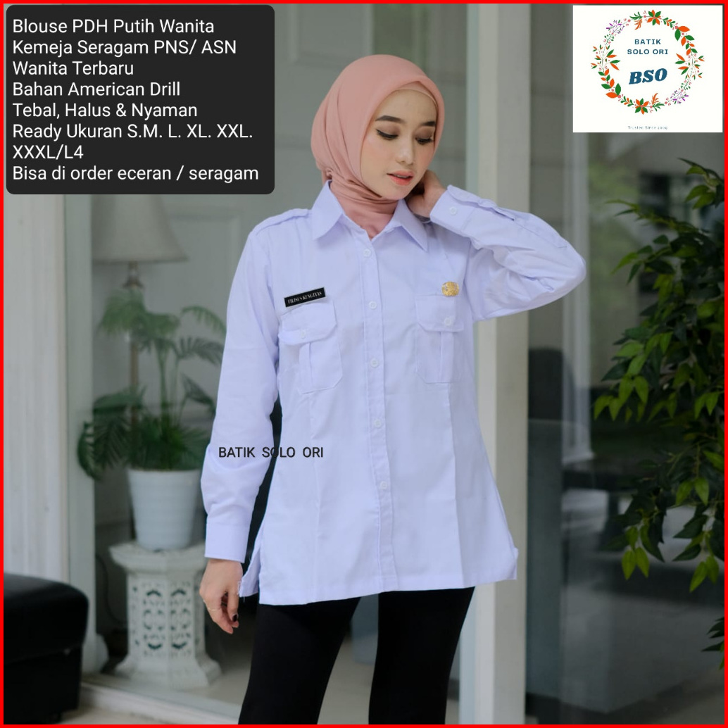 Pakaian Seragam Perempuan Uniform Putih Tangan Panjang Baju Dinas Putih Pdl Wanita Murah Terbaru By Batik Solo Ori Bso B