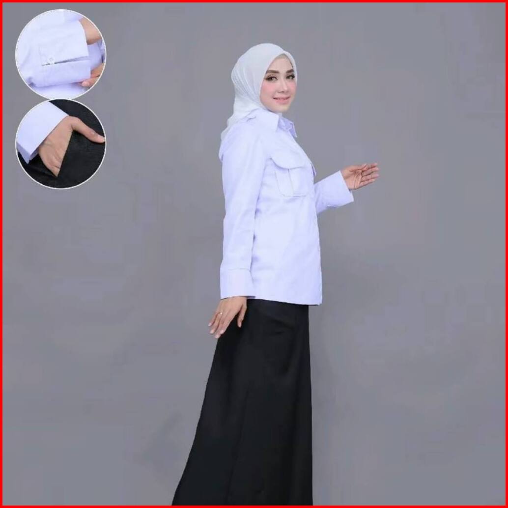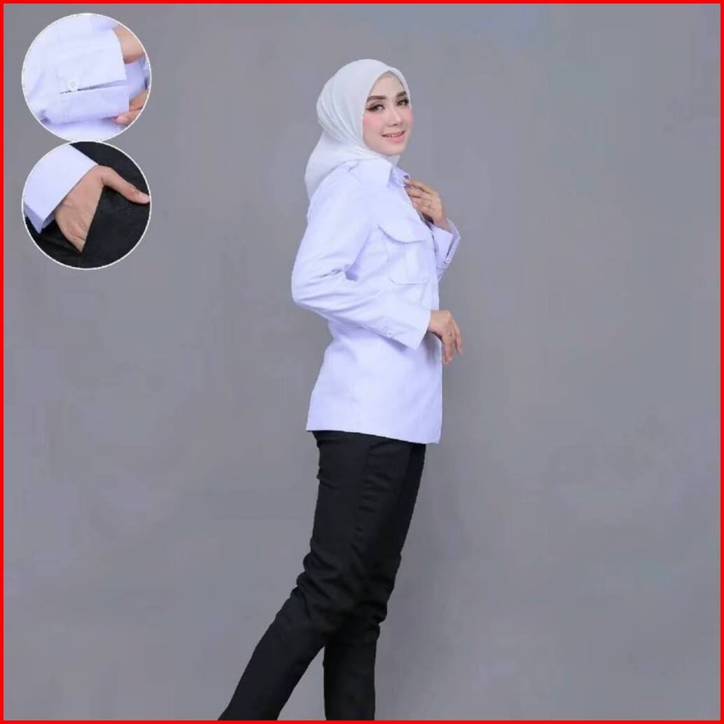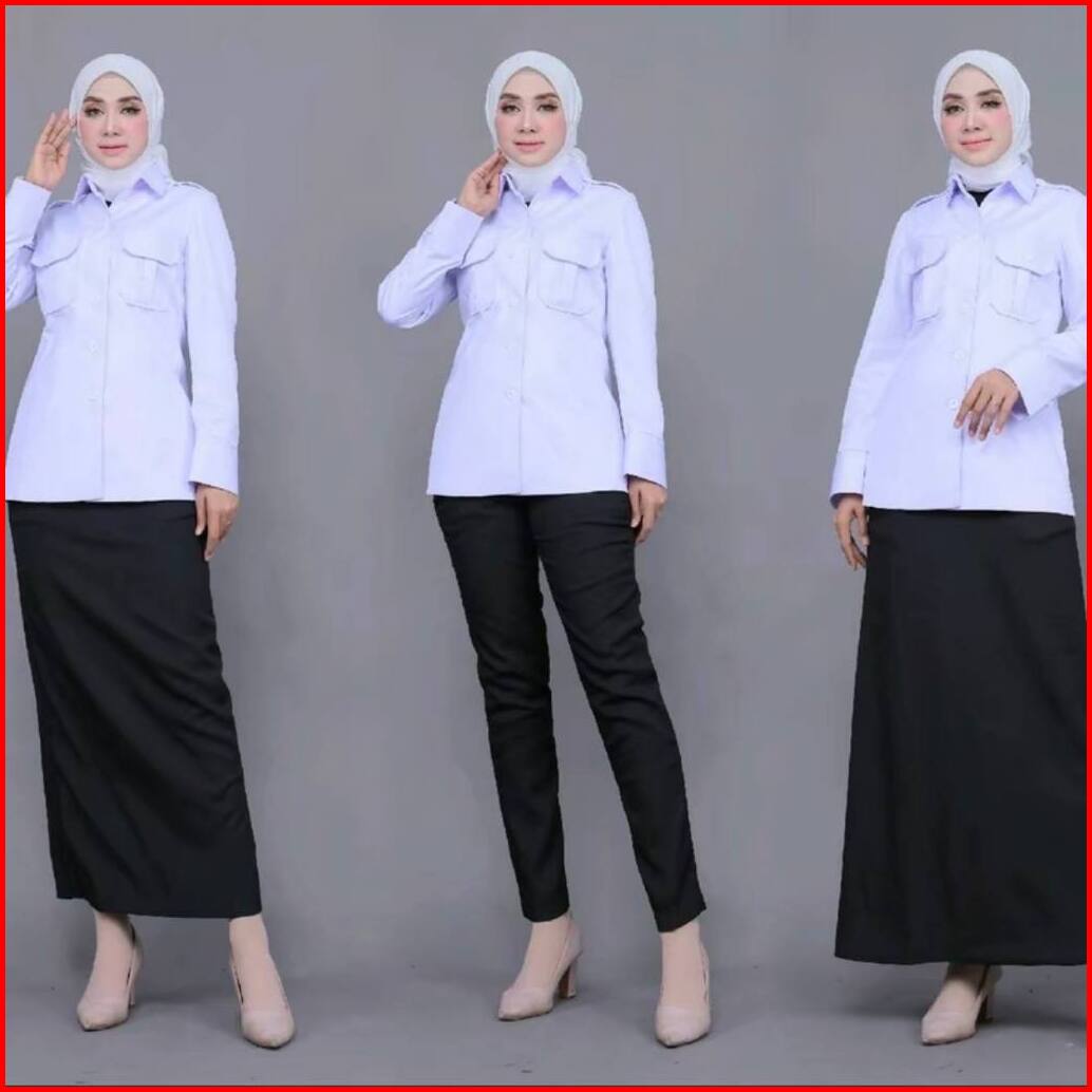 Setelan Seragam Kerja Dinas Putih Kantong Dua Kerah Kemeja Dan Kerah Rebah Seragam Kerja Atasan Putih Wanita