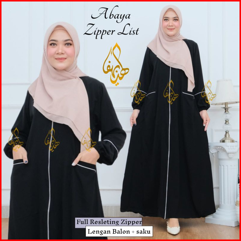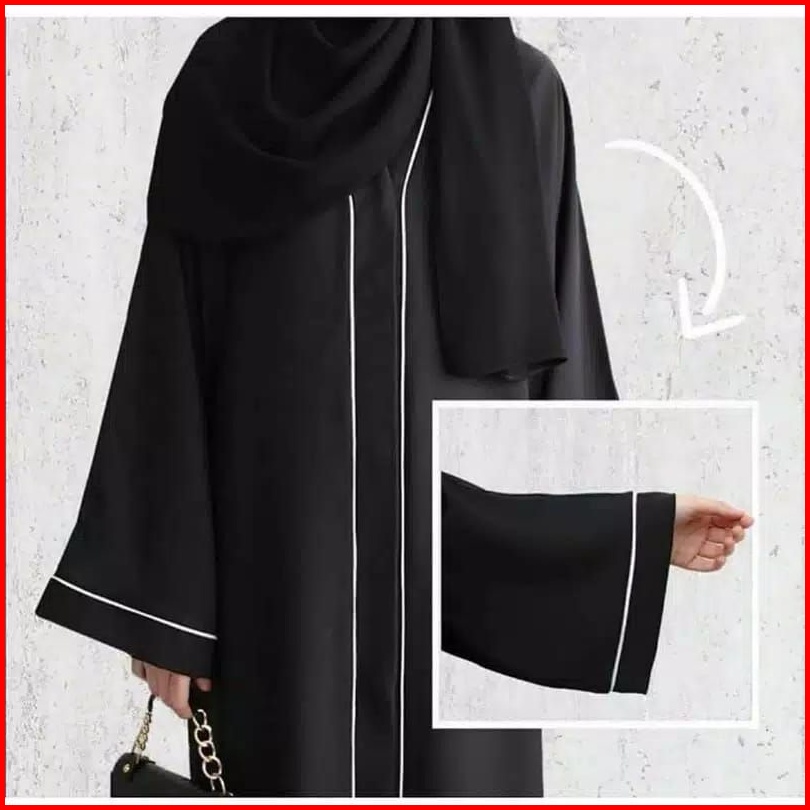 Gamis Abaya Arab Hitam List Busui Bahan Jet Black Saudi Kwalitas Terjamin