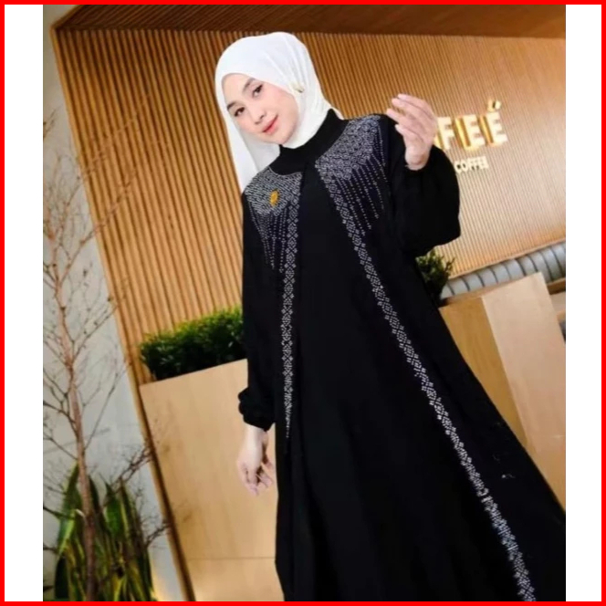 Baju Gamis Wanita Terbaru Ameera Maxy Bo M L Xl Xxl Xxxl Ld 100-130 Cm Bahan Crinkle Mix Ceruty Babydoll Aplikasi Mutiar