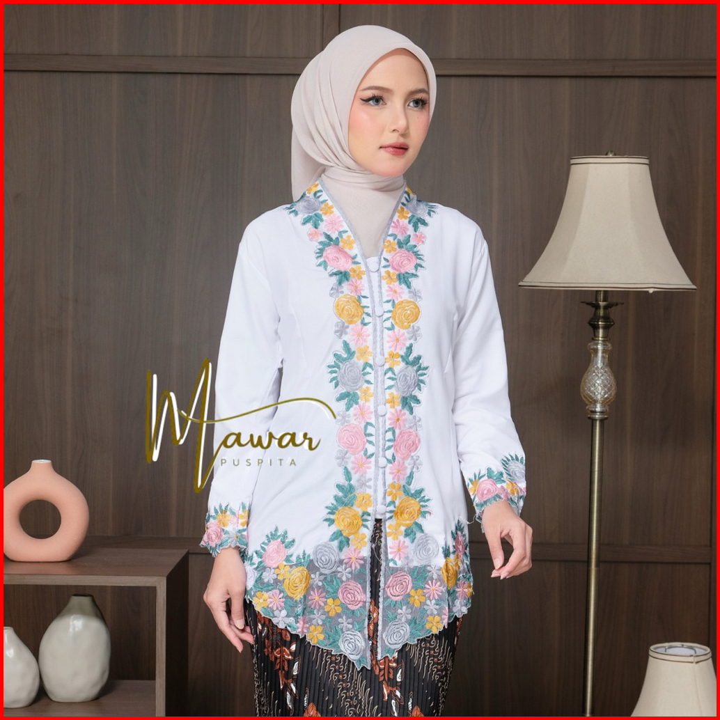 Mawar Puspita - Kebaya Encim Bordir Warna Bunga Mawar Lengan Panjang