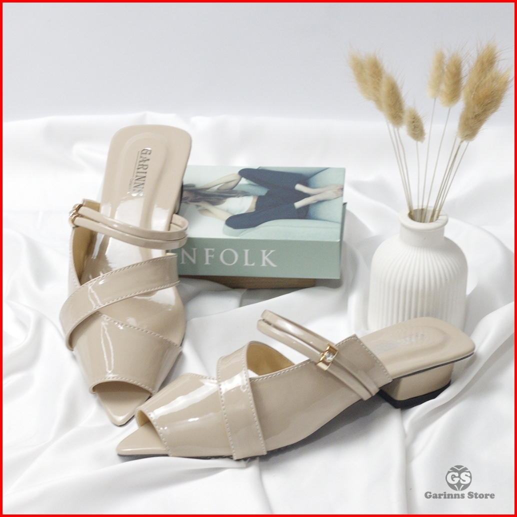 Sandal Sepatu Mules Tali Wanita Trend Kekinian Hak 3cm Garinns
