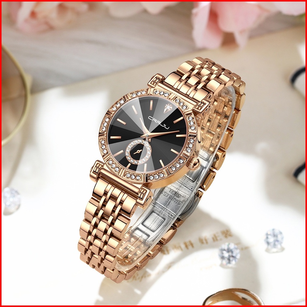 Crrju Jam Tangan Wanita Anti Air Korea Original Bisnis Kuarsa Tali Stainless Steel Jam Tangan Cewekfree Box