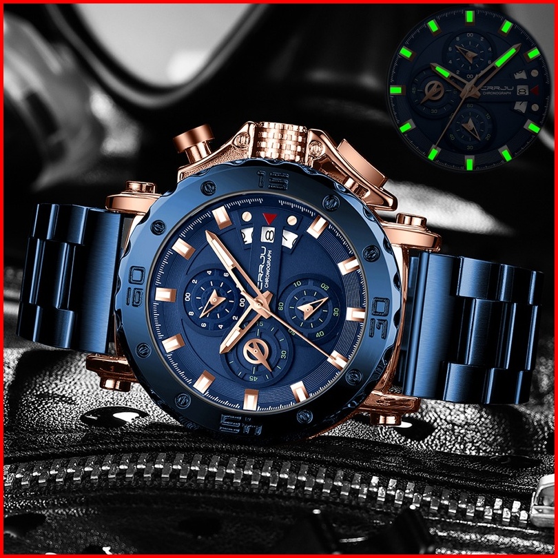 Crrju Jam Tangan Pria Militer Multifungsi Kasual Cowok Olahraga Chronograph Tahan Air Bercahaya Kuarsa