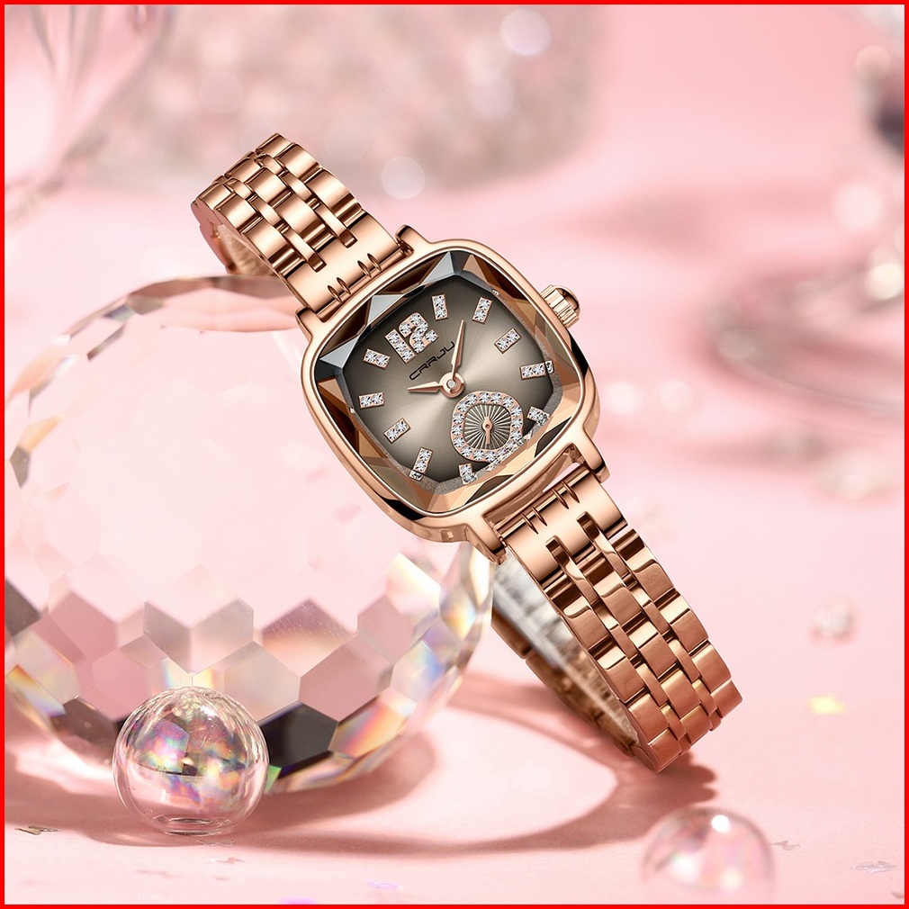 Crrju Jam Tangan Wanita Fashion Kasual Tali Baja Tahan Karat Jam Cewek Kuarsa Tahan Air Asli