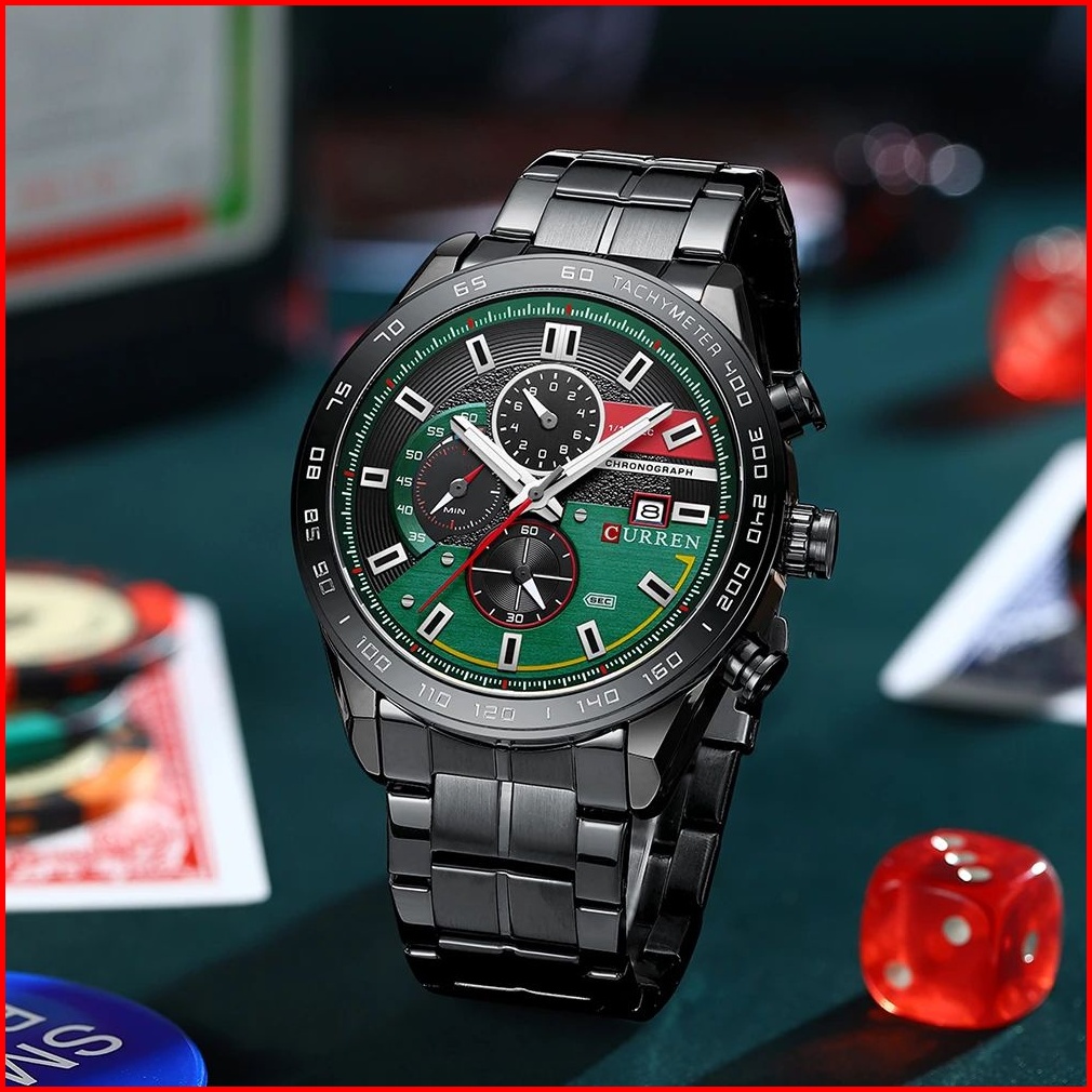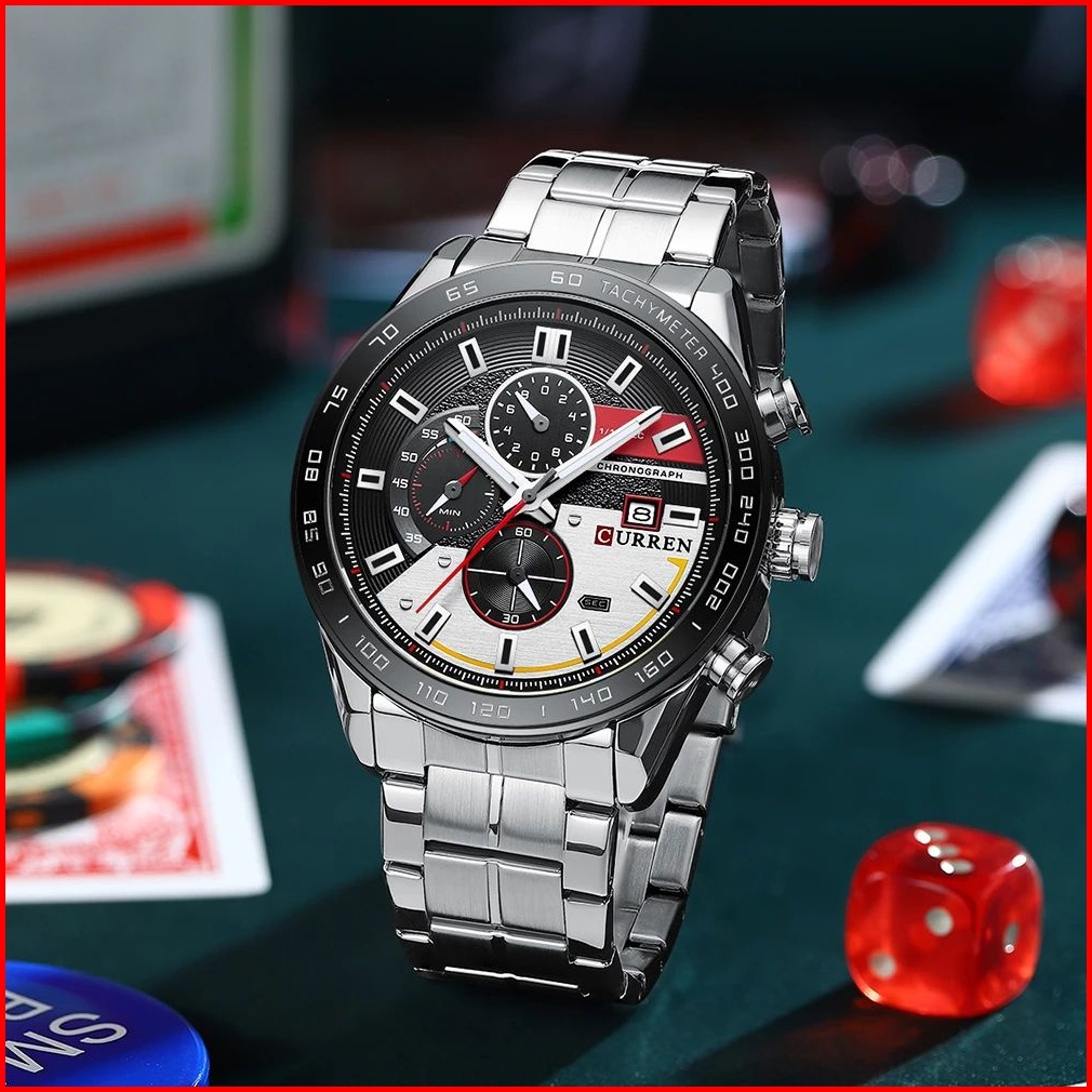 Curren 8410 Jam Tangan Pria Analog Stainless Steel Chronograph Luminous Hand Currenos