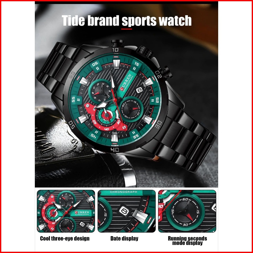 Curren 8402 Jam Tangan Pria Stainless Steel Chronograph Luminous Hand Currenos