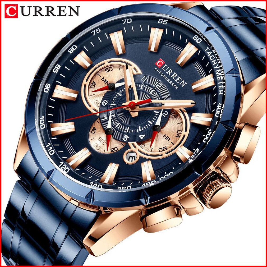 Curren 8363 Jam Tangan Pria Analog Stainless Steel Chronograph Aktif Luminous Hand Currenos