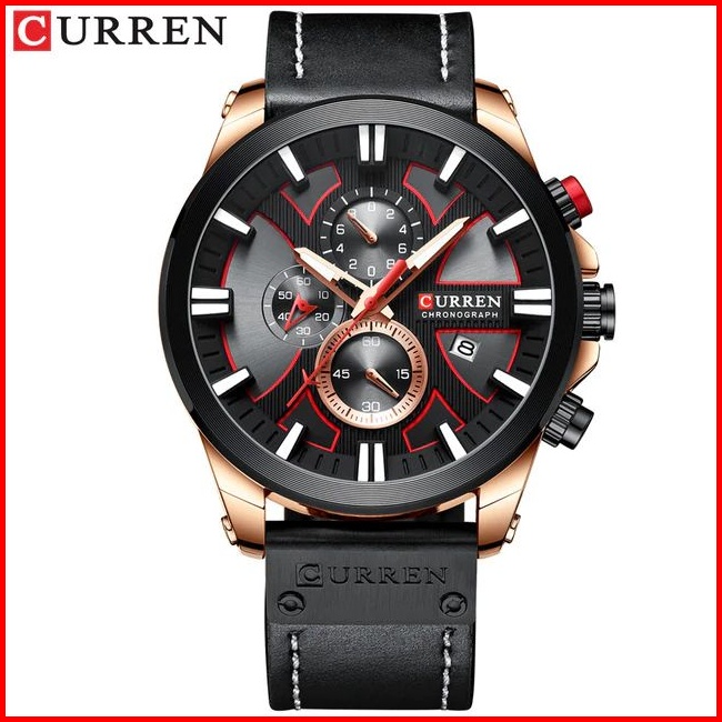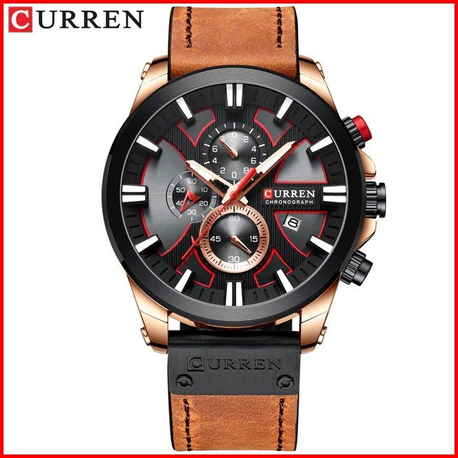 Curren 8346 Jam Tangan Pria Analog Tali Kulit Chronograph Aktif Currenos