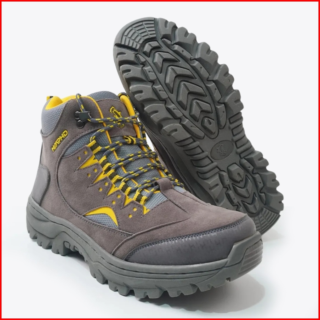 Hmrhd Sepatu Pria Safety Boots Mako High Grey Yellow Ujung Besi