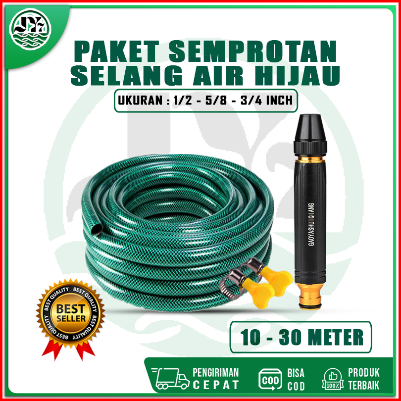 Sepaket Semprotan Selang Air 1 2 5 8 3 4 Inch 20 Meter Hijau Anti Lumut Tebal Alat Cuci Motor Mobil