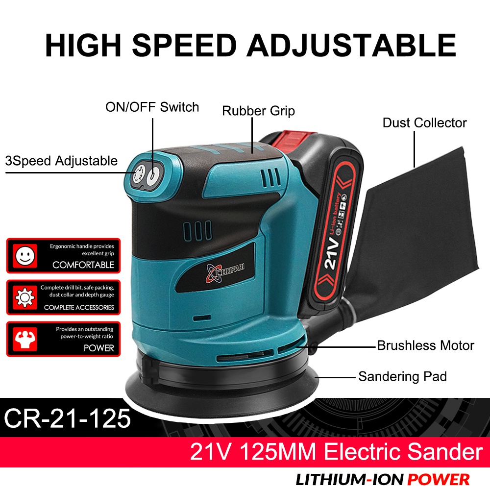 [PROMO] COOFARI 125mm Brushless Disc Orbital Acak Listrik Sander Grinder Polisher Mesin Amplas 3 Kecepatan Dengan 2 pcs Baterai