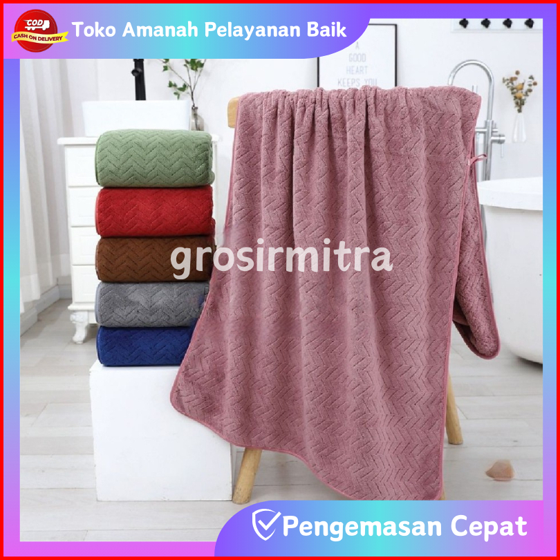 Handuk Mandi 80x160cm Jumbo Kamar Mandi Microfiber Menyerap Air Embos Zigzag Sb