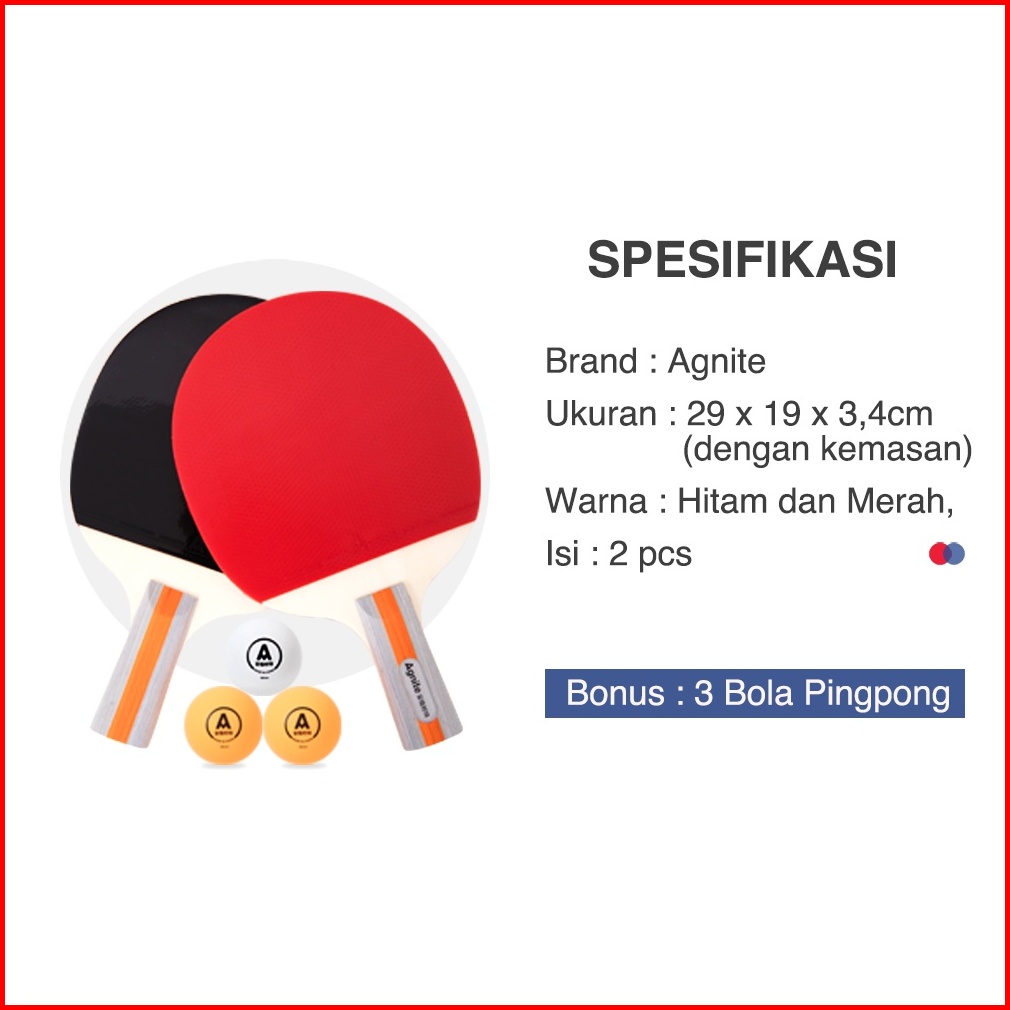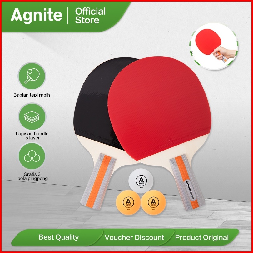 Agnite Table Tennis Paddle Bet Pingpong Bat Tenis Meja Isi 2 Gratis Bola High Quality F2320