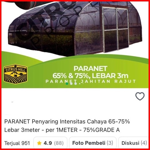 Promo Paranet 75 65 Easygrow Jaring Untuk Tanaman Plastik Murah Nylon - Lebar 3 Meter