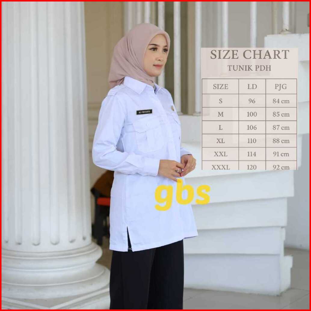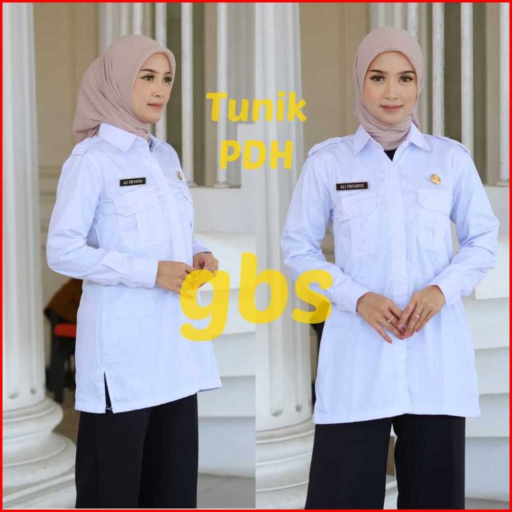 Tunik Pdh Putih Wanita Lengan Panjang Terbaru Tunik Wanita Putih Lengan Panjang Seragam Pppk Bahan Amerikan Drill