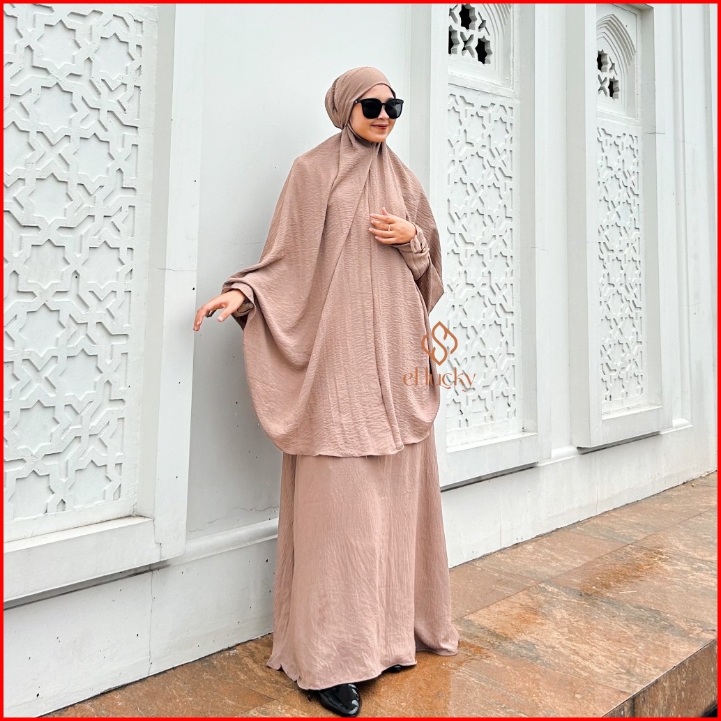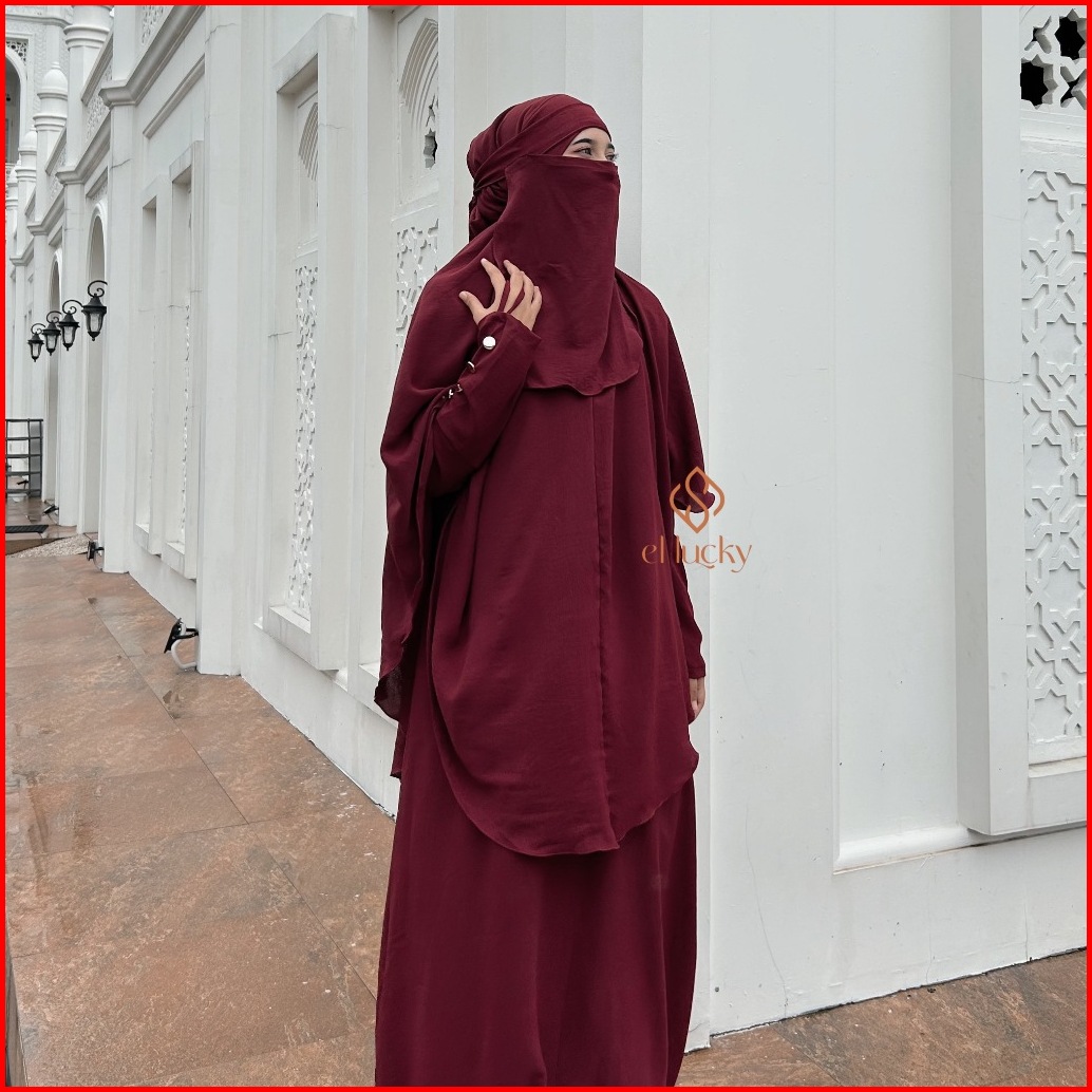 Rauda Abaya Set Gamis Syari Dengan French Khimar Panjang Niqab Bahan Crinkle