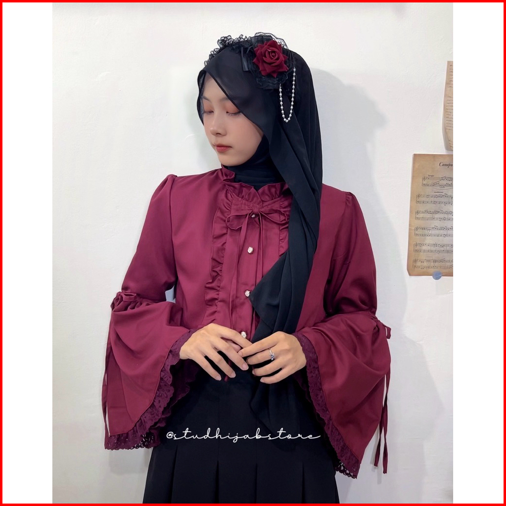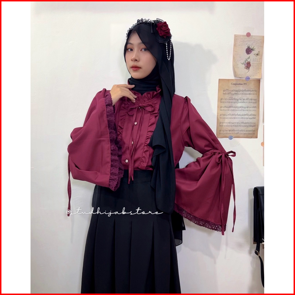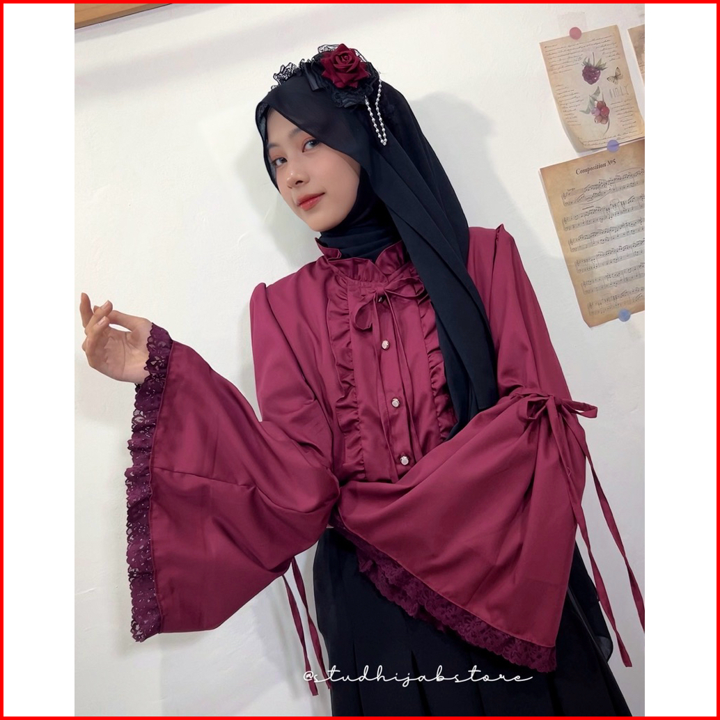 Lyla Vintage Bell Blouse With Lace Blouse Lengan Lonceng Medieval Fantasy Cottagecore Style By Studhijabstore