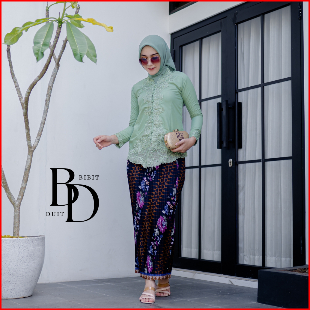 Baju Atasan Kebaya Encim Bordir Modern Jumbo Motif Bunga Lengan Panjang Bahan Katun
