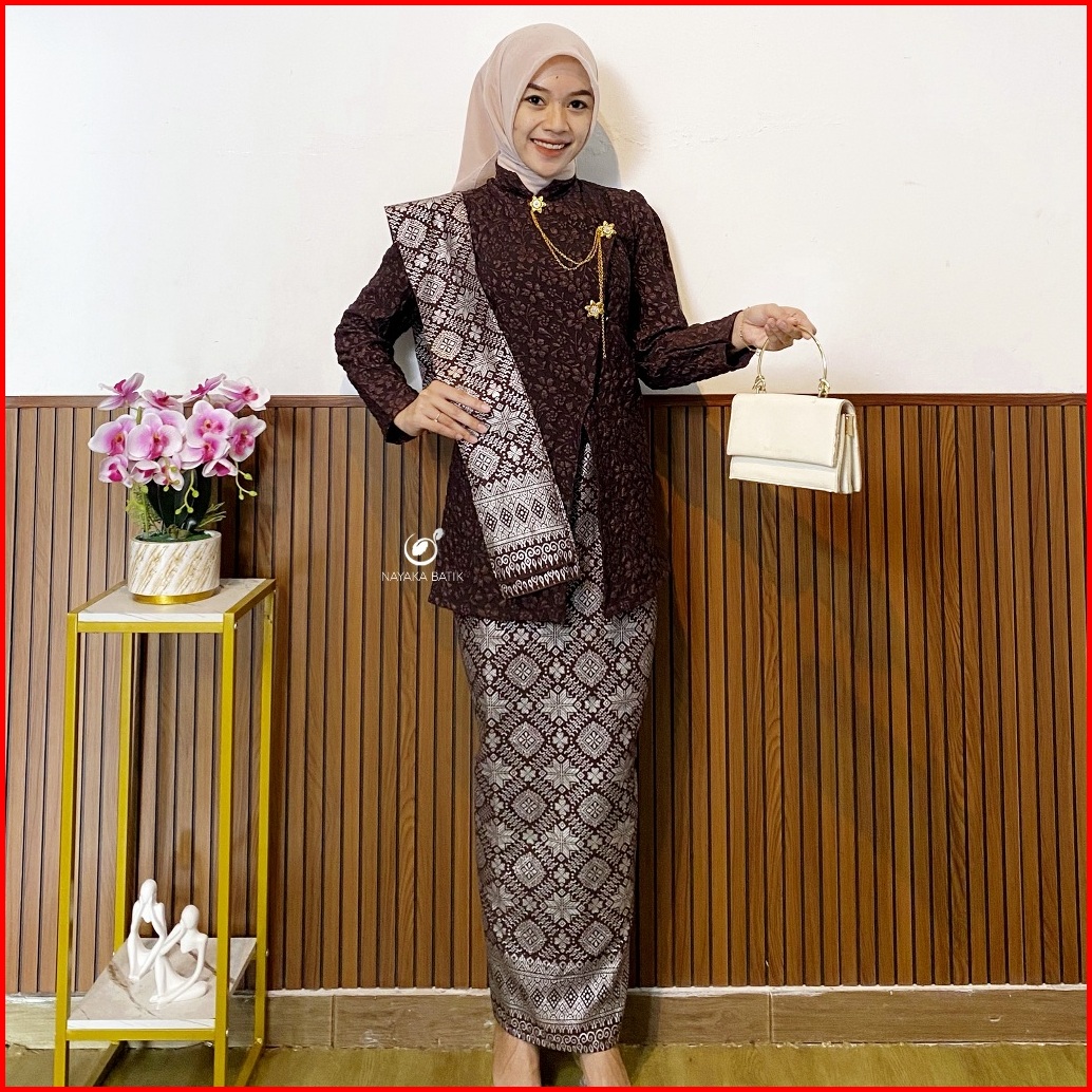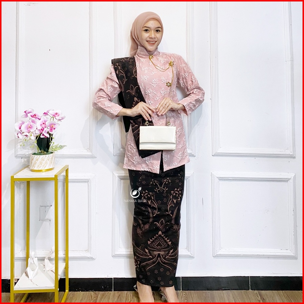 Free Bross Nayaka Batik - Setelan Kebaya Janggan Modern Fahira Ayu Fukuro Embos Kombinasi Katun Batik Halus Set Kondanga