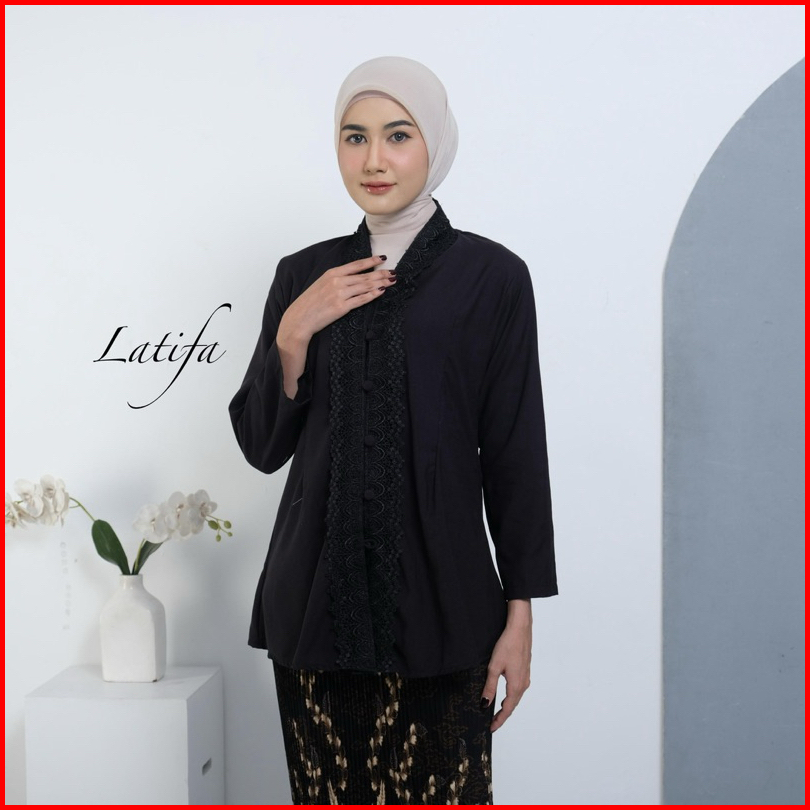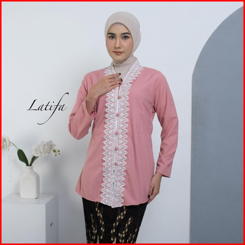 Kebaya Encim Modern Renda Motif Bunga Bahan Katun Mikro Lengan Panjang