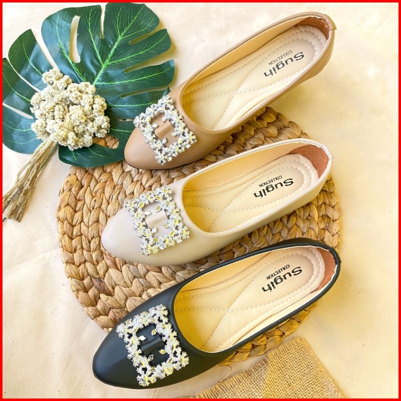 Naisa Flatshoes Wanita Variasi Kotak Lucu Non Slip