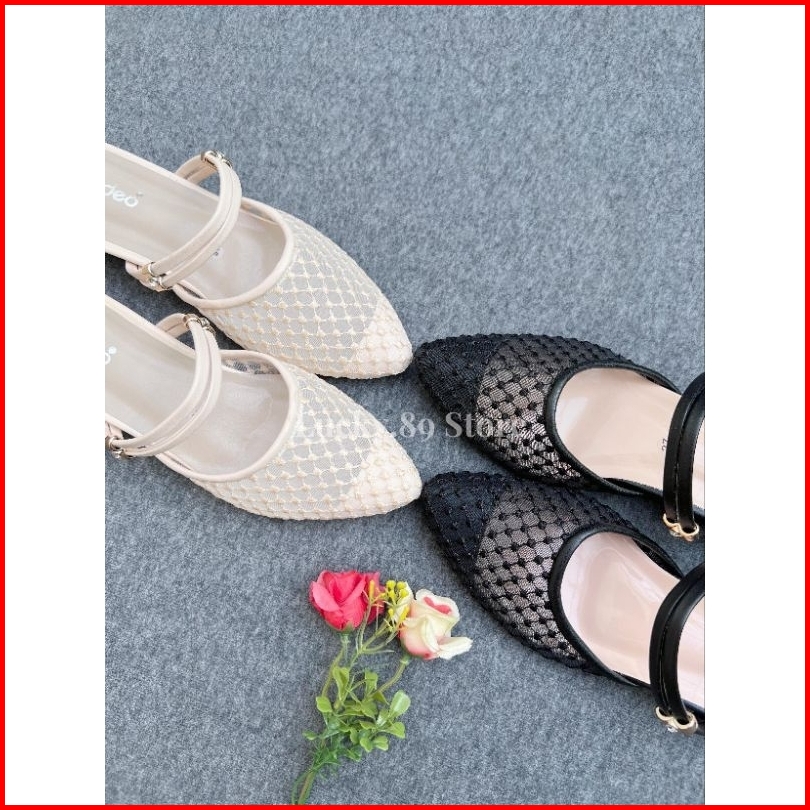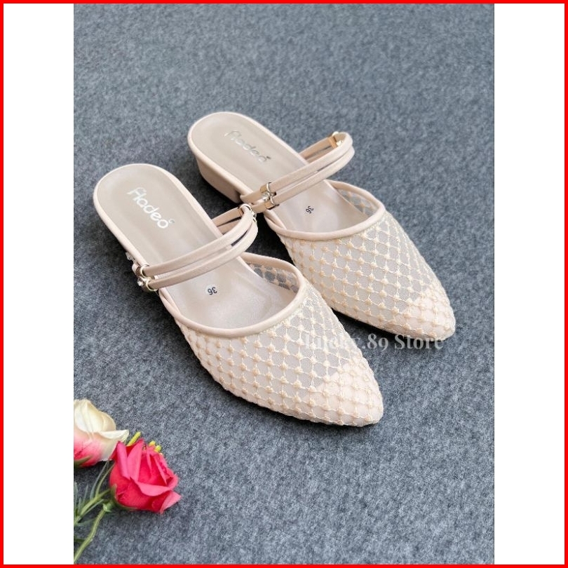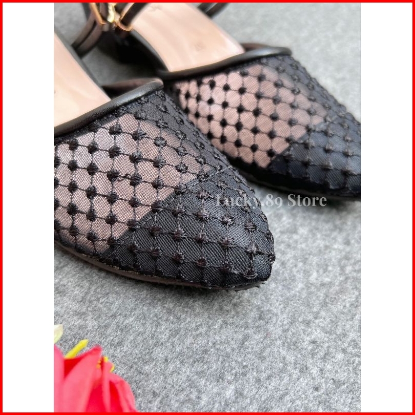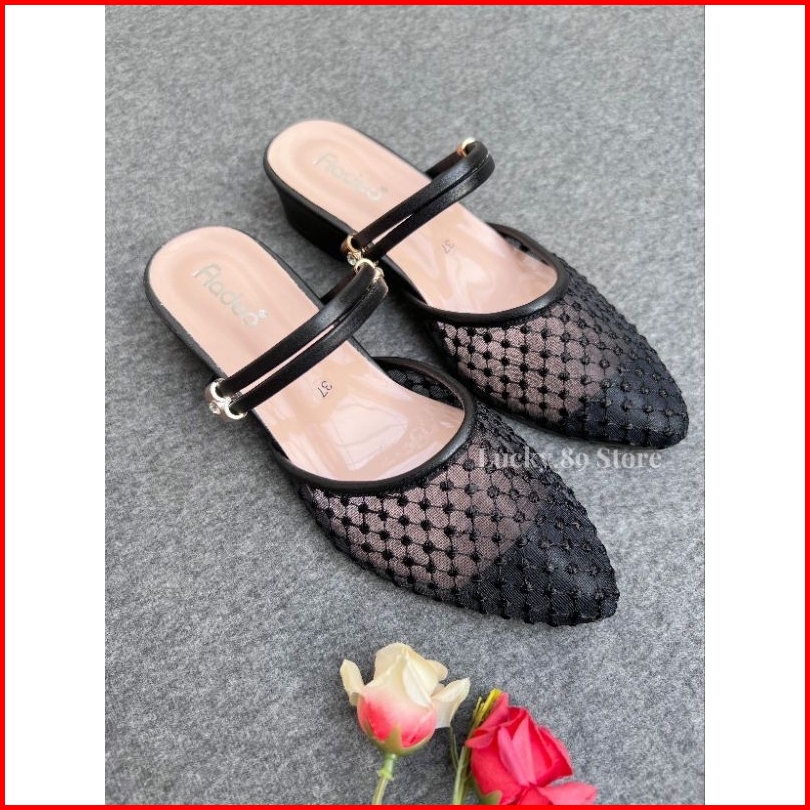 Fladeo Sandal Wanita Brukat Heels 3cm Sendal Pesta Cantik
