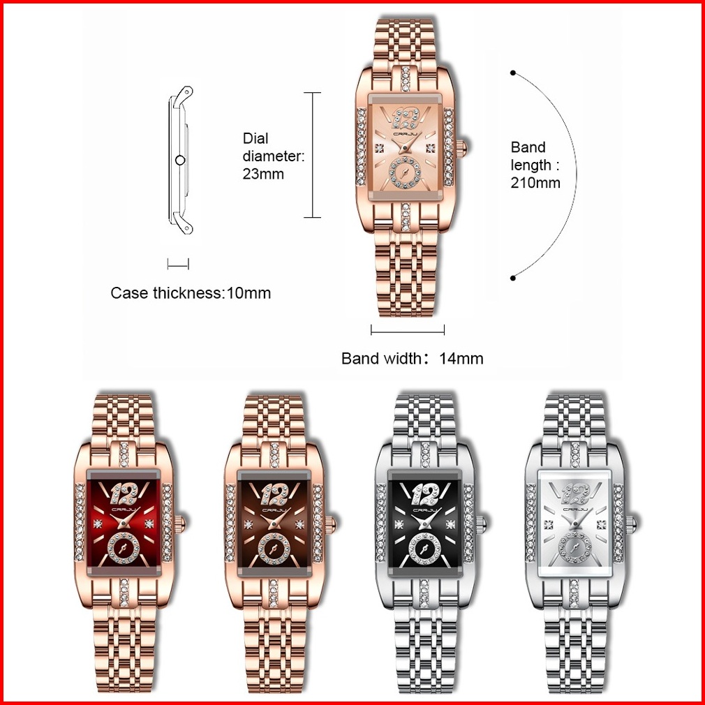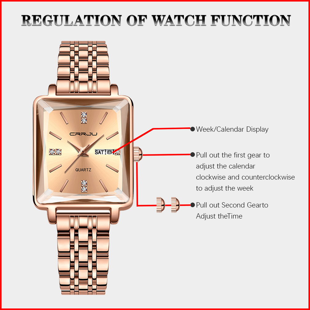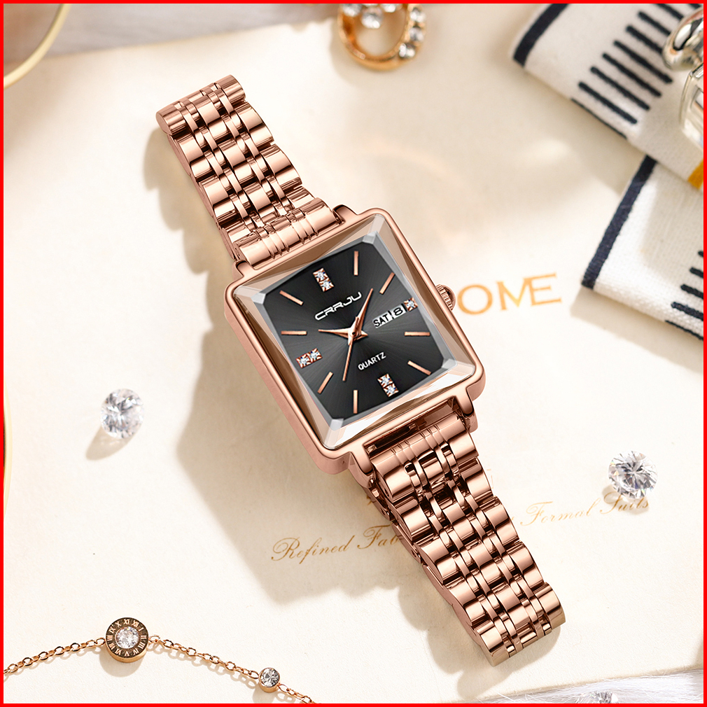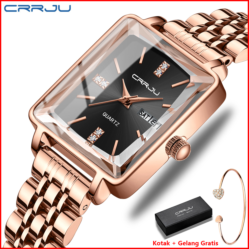 Crrju Jam Tangan Wanita Original Anti Air Tali Stainless Steel Jam Kuarsa Santai Mewah Minggu Kalender Otomatis Jam Tang