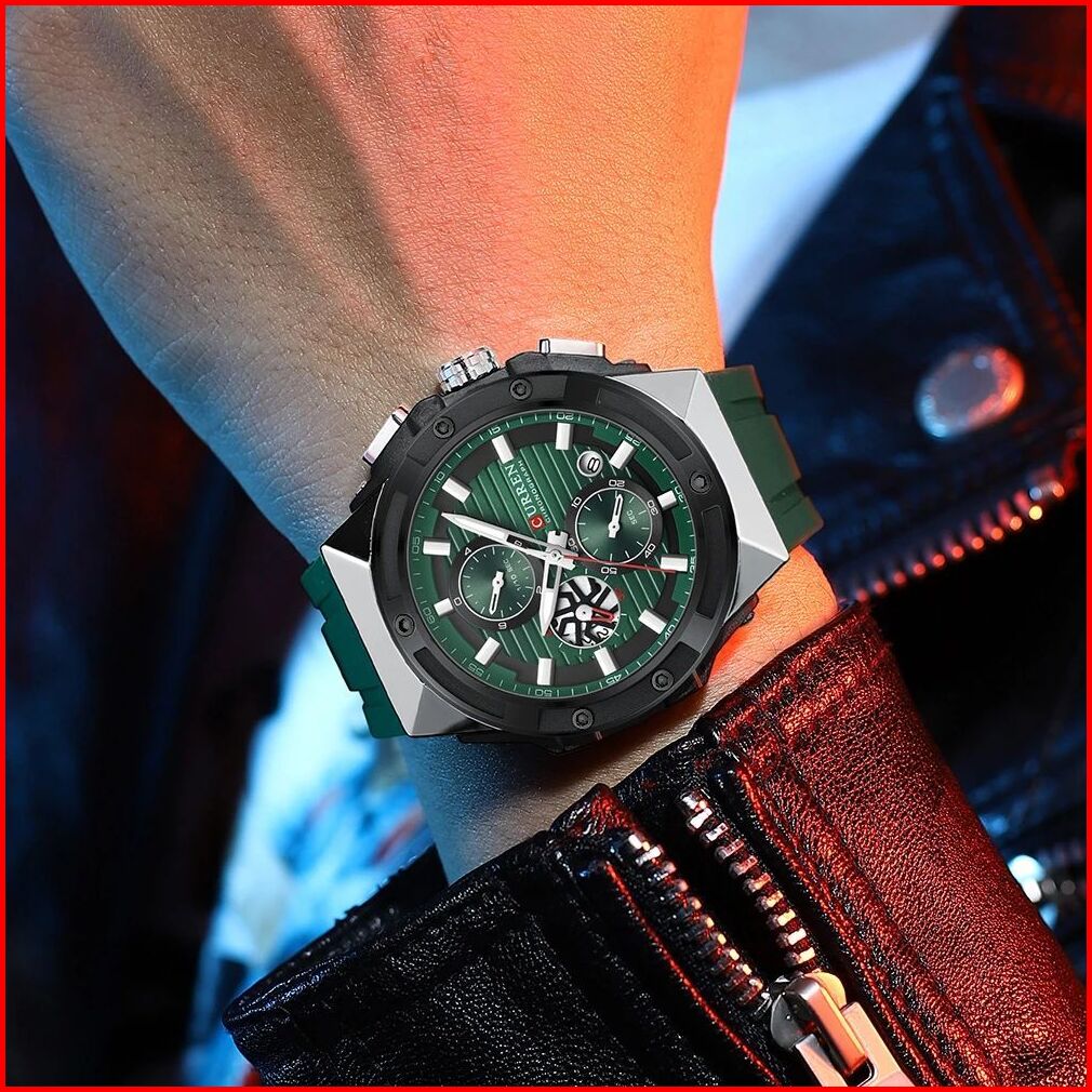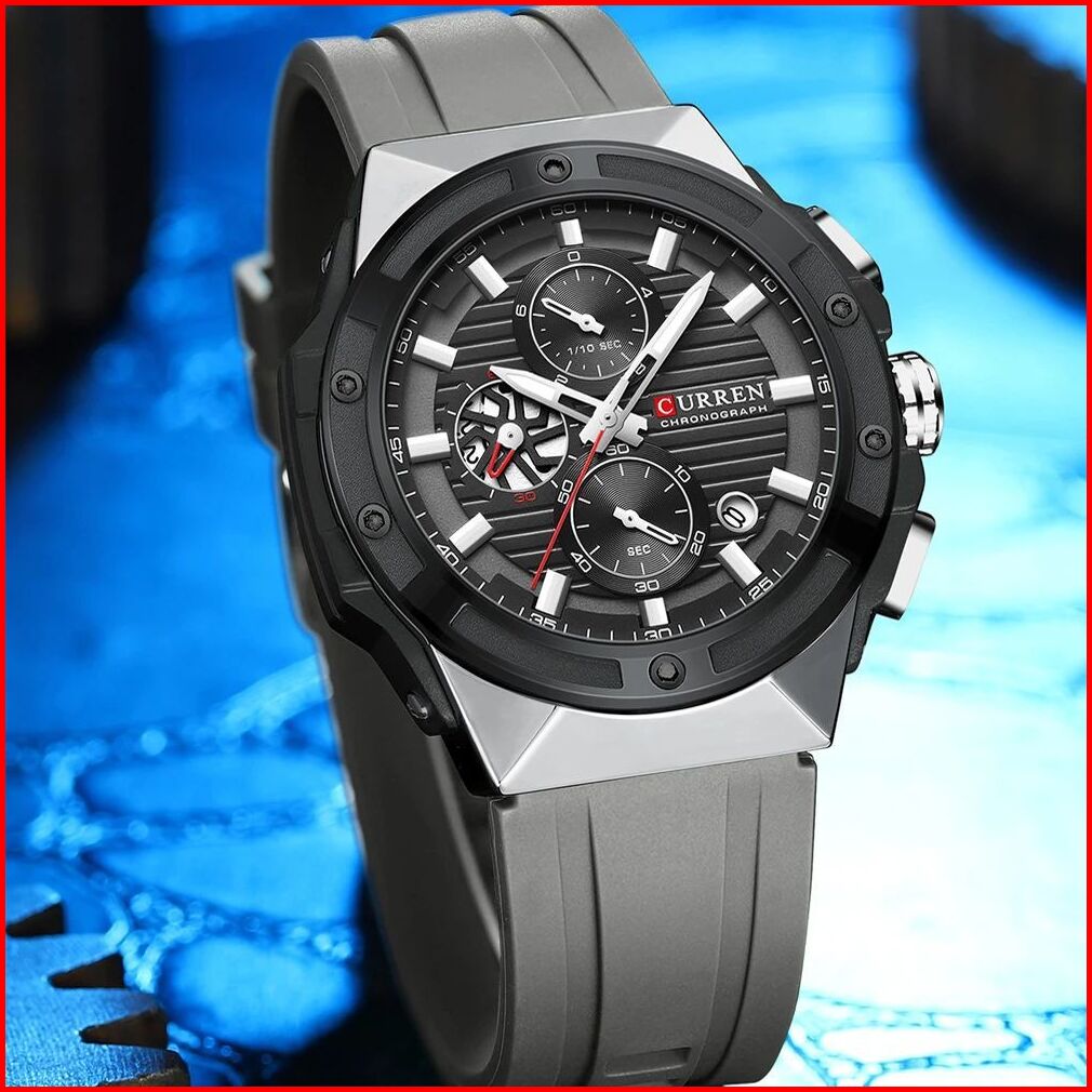 Curren 8462 Jam Tangan Pria Analog Tali Silicone Chronograph Aktif Luminous Hand Currenos