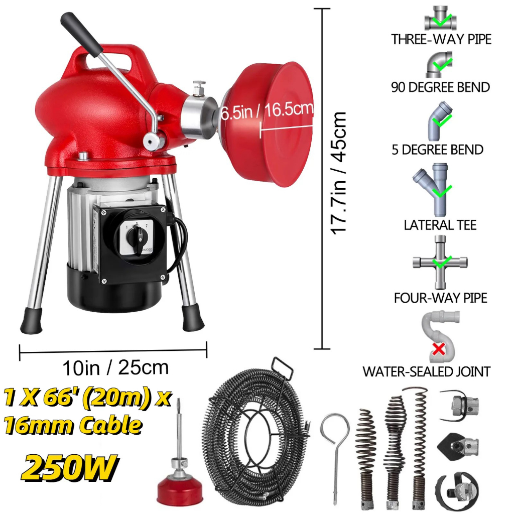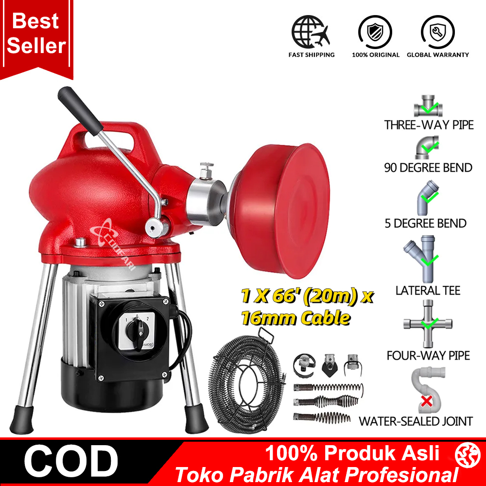 [PROMO] Solusi Saluran Mampet Mesin Bor Pembersih Pelancar Pipa Mampet Electric Drain cleaner machine with 20m Snake Cables