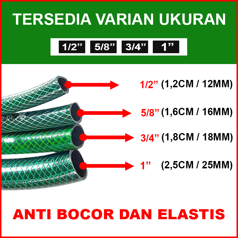 Selang Air 1 Rol 20 - 25 Meter 1 2 5 8 3 4 1 Inch Selang Kran Air Taman Hijau Anti Lumut Tebal 2 Mm