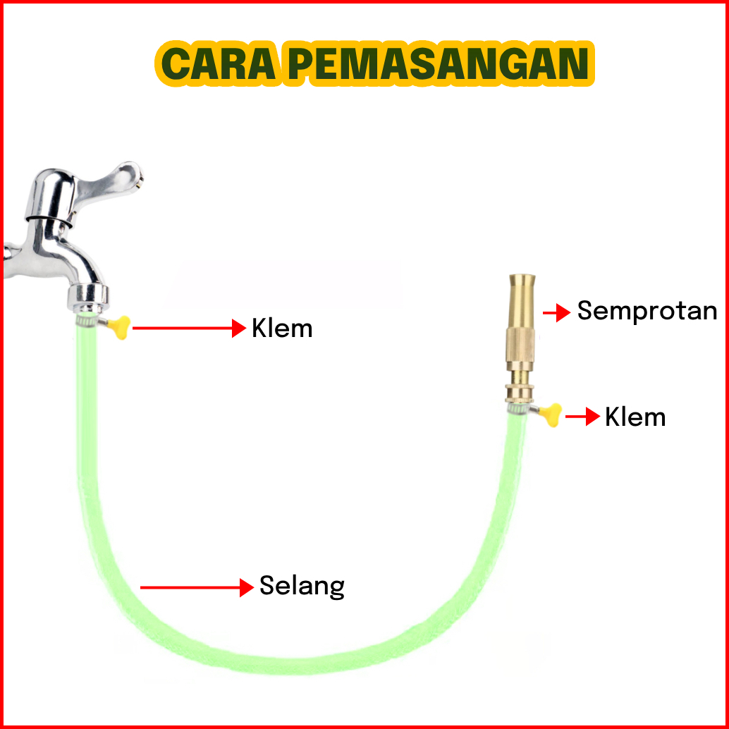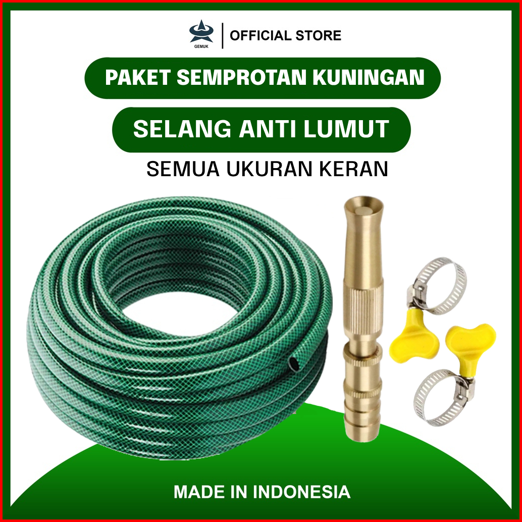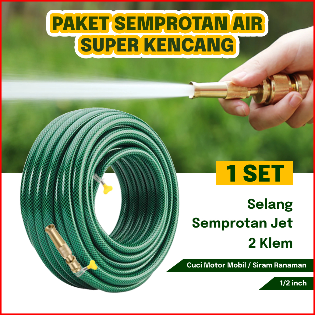 Gemuk Selang Air Cuci Motor 1 2 Inch 15 Meter Sepaket Selang Air Benang Anti Lumut Dengan Semprotan Air Nozzle Kuningan