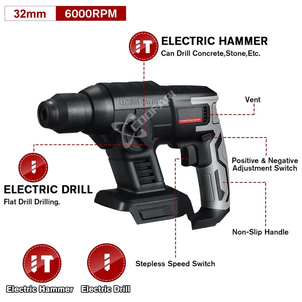 [PROMO] COOFARI Bor Tanpa Kabel Dampak Putar Bor Dampak Berat Tanpa Kabel 32mm Bor Dampak