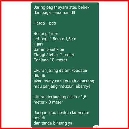 2 X 10m Lubang 1 5 X 1 5cm Jaring Pagar Ayam Atau Bebek Hrg 1 Pcs