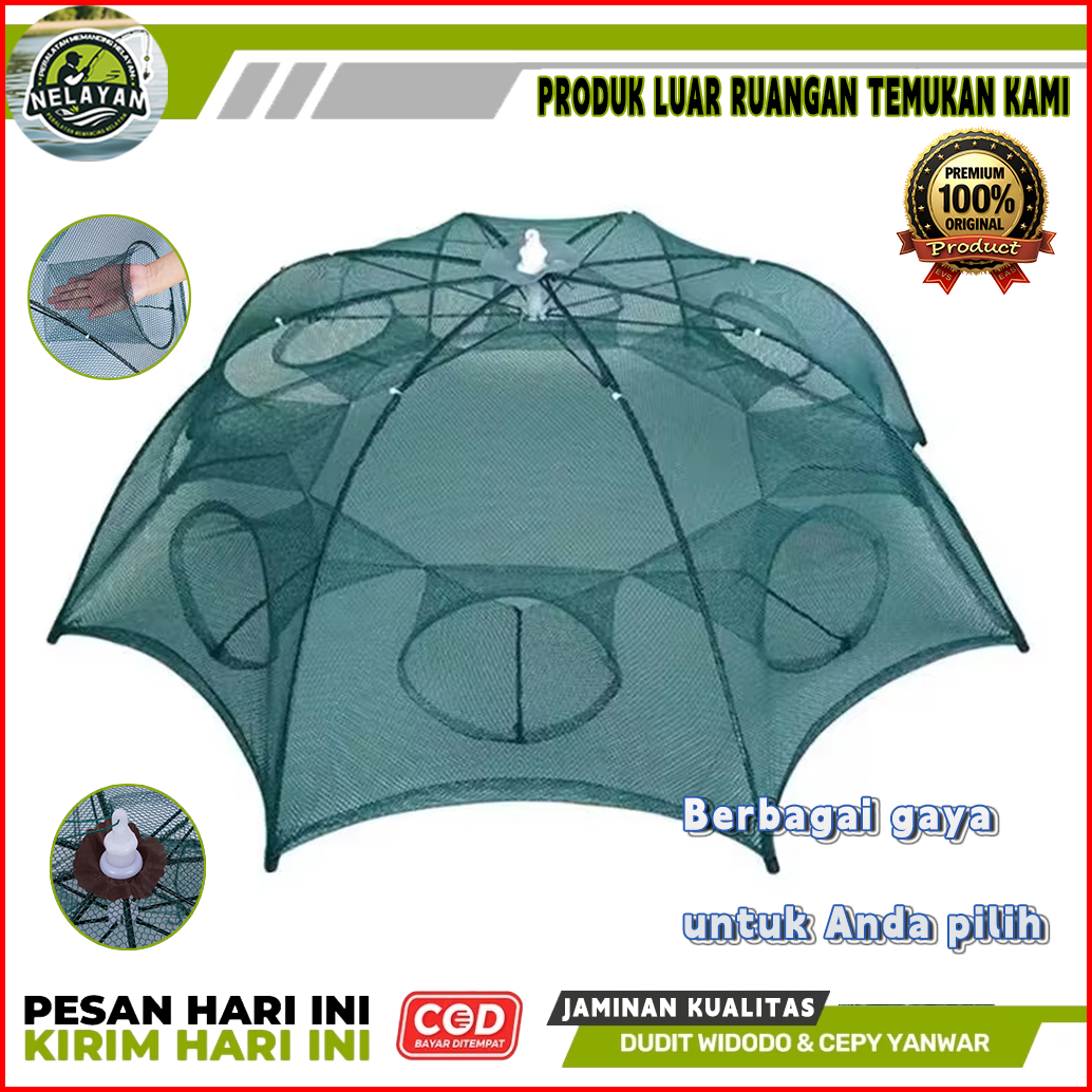 Phoenix Perangkap Bubu Payung 4-16 Lubang Alat Jaring Pancing Jala Ikan Udang Kepiting Lele Lobster Sungai Laut Danau Fi