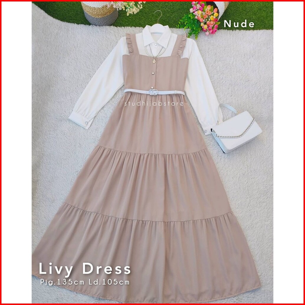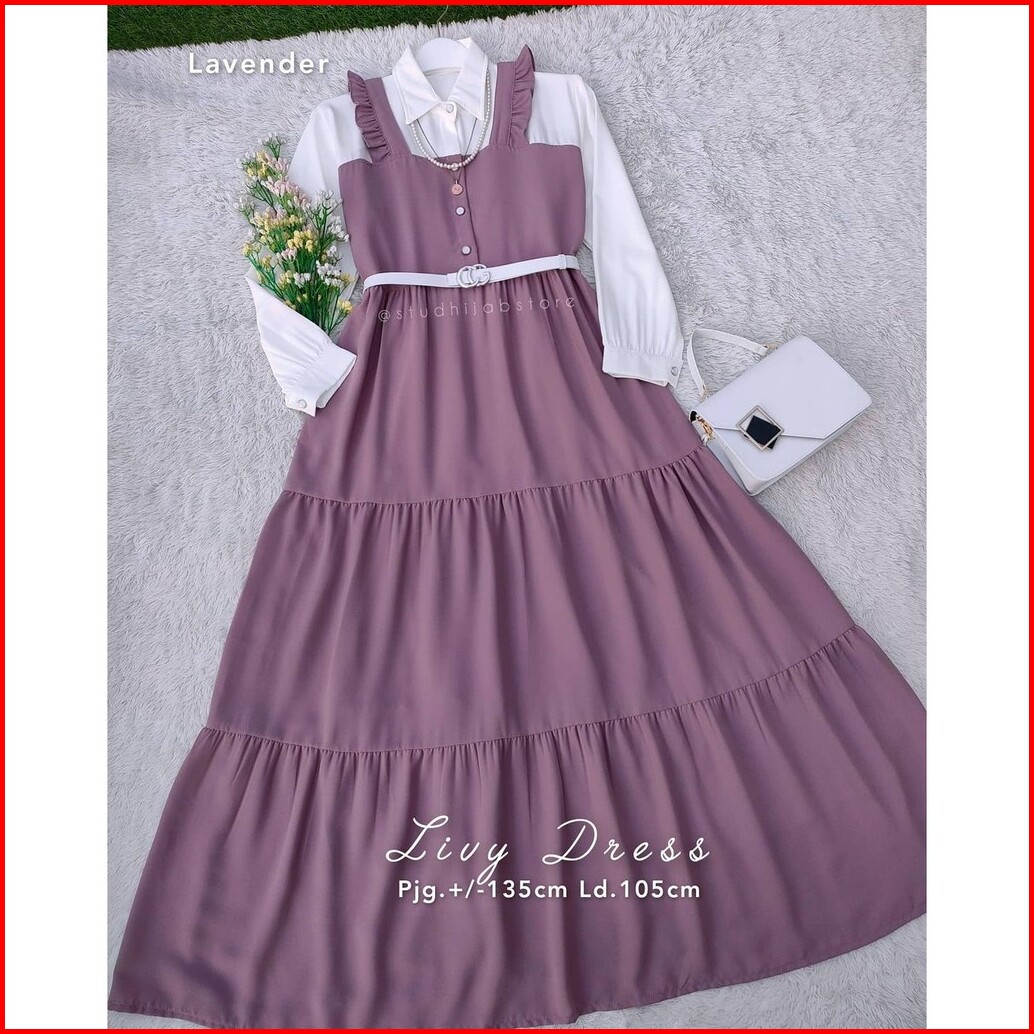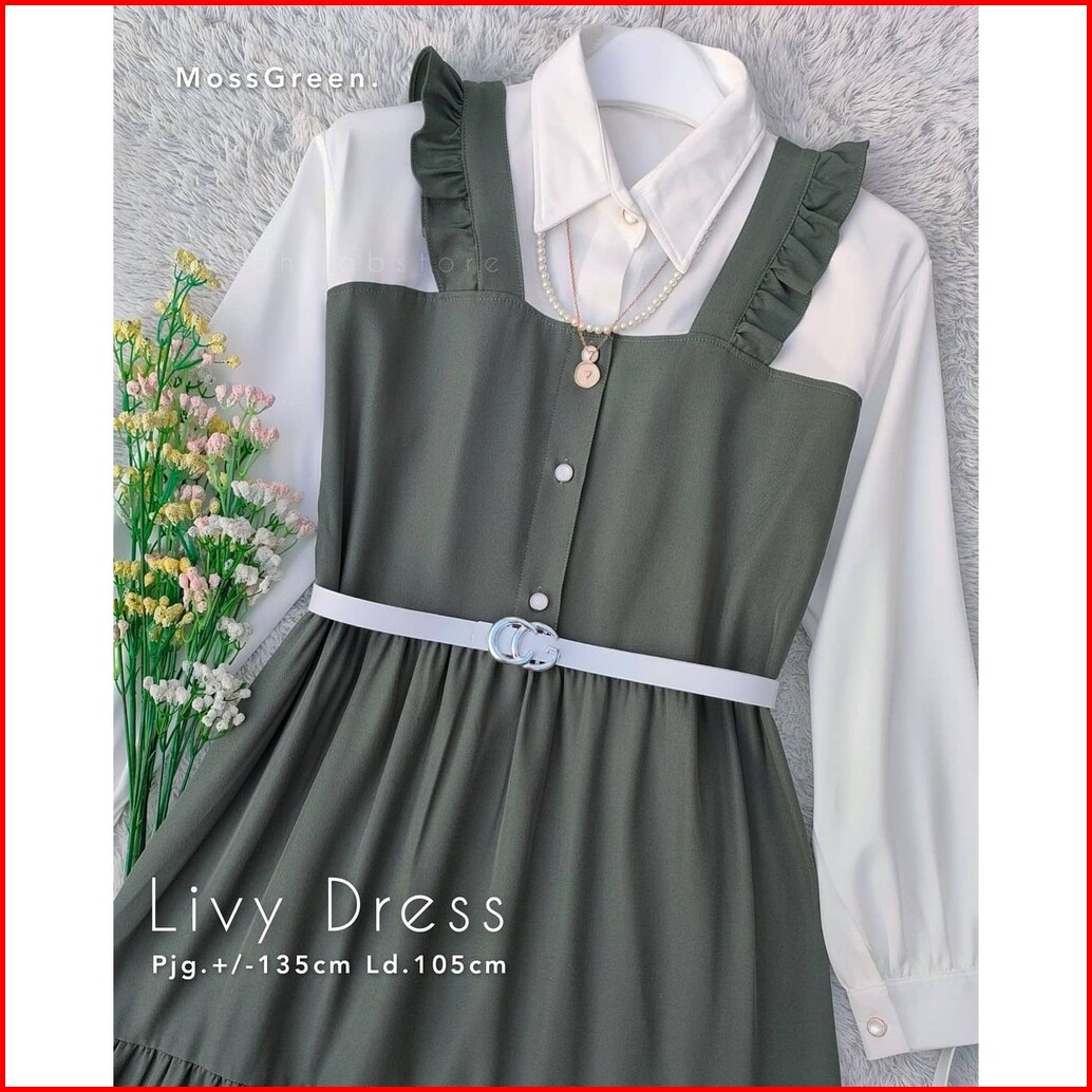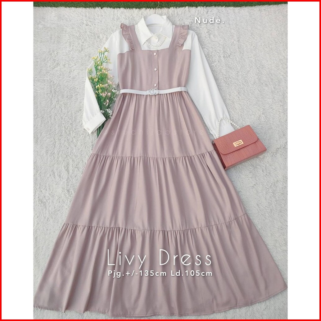 Baju Gamis Wanita Terbaru Livy Dress Gamis Remaja Kekinian Korean Style Busui Free Belt Frz