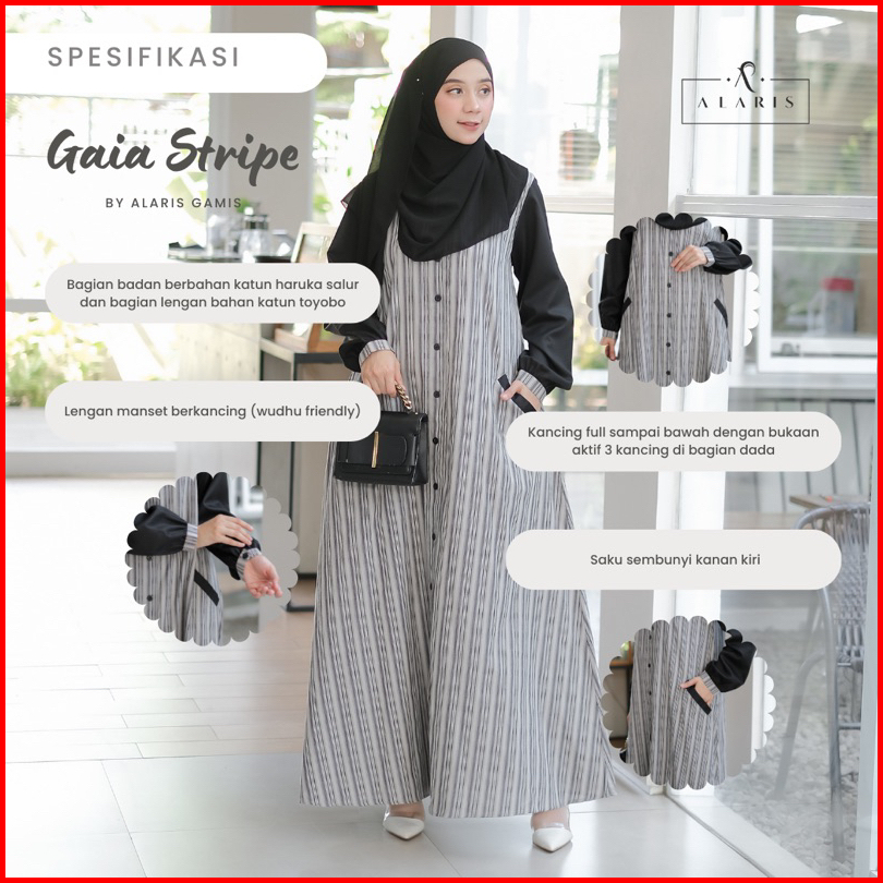 Gaia Stripe Gamis Katun Salur Gamis Garis Garis Gamis Casual Casual Dress Gamis Motif Salur