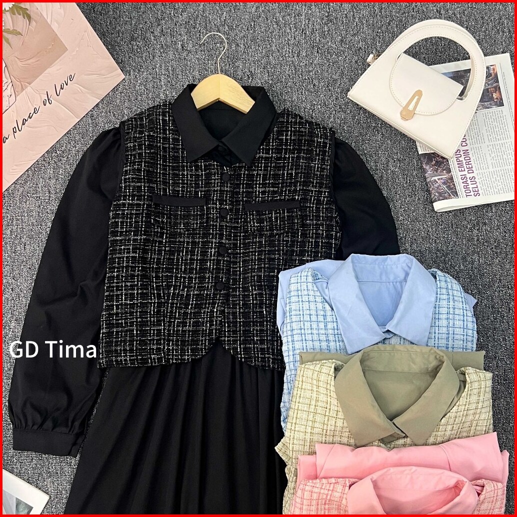 Gdtima Setelan Wanita Kekinian Rompi Lengang Panjang Elegant Dress Baju Lebaran 2025