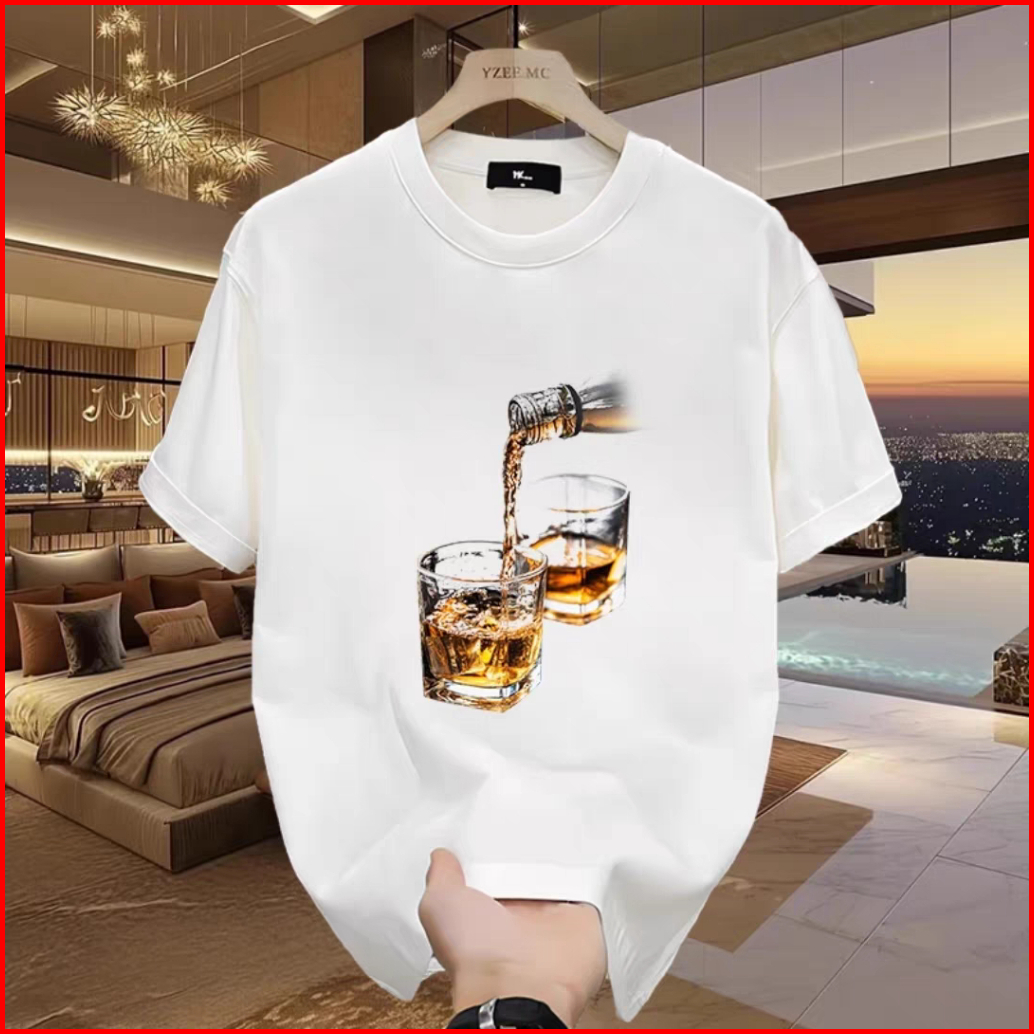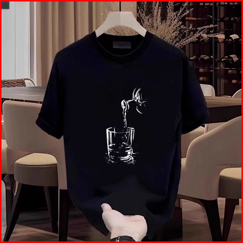 Kaos Motif Menyiram Minuman Katun Berkualitas Nyaman Bernapas Loose Fit