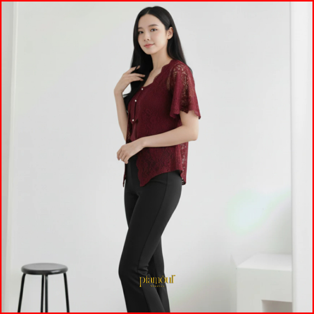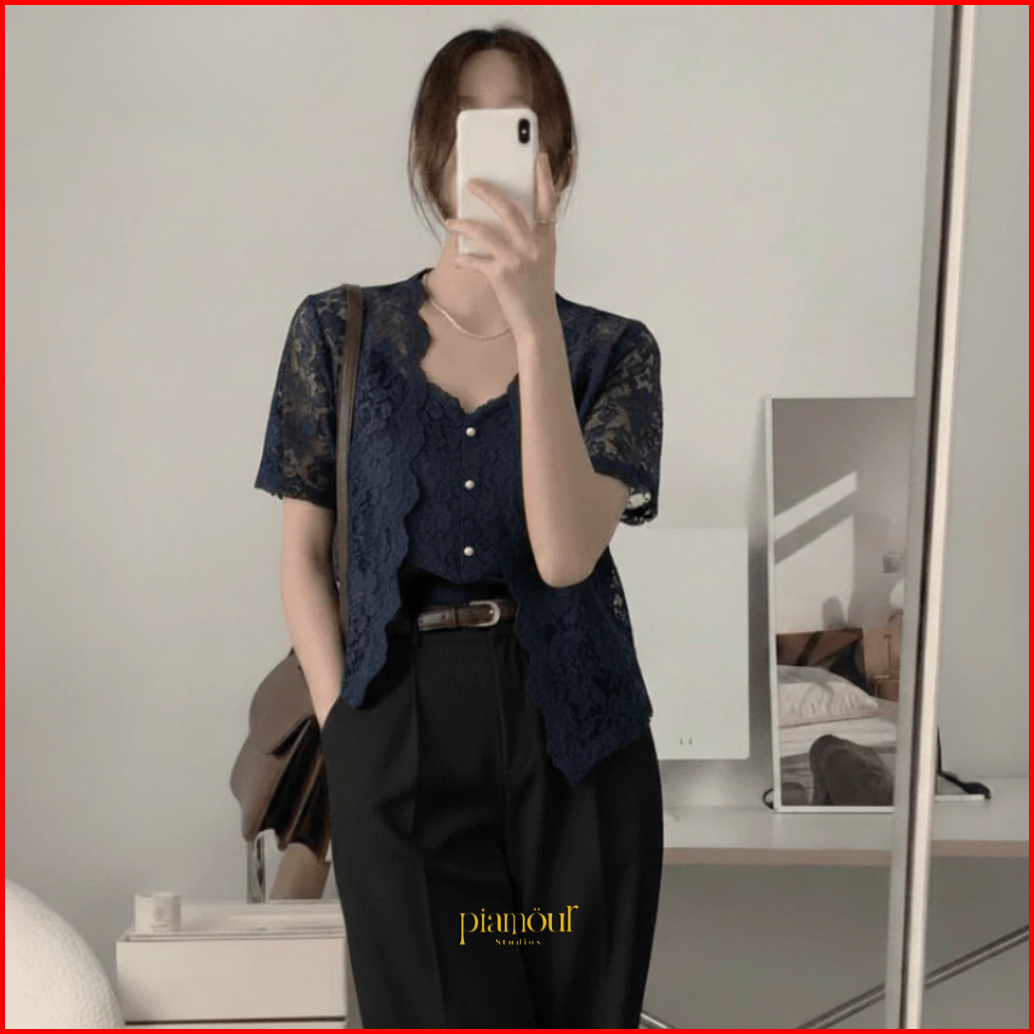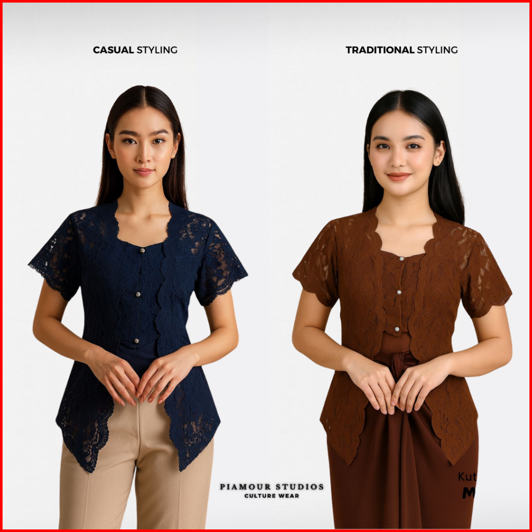 Piamour Hagia Top Set Kebaya Kutubaru Modern Atasan Outer Kebaya Kutu Baru Lengan Pendek Baju Kondangan Wanita Kekinian