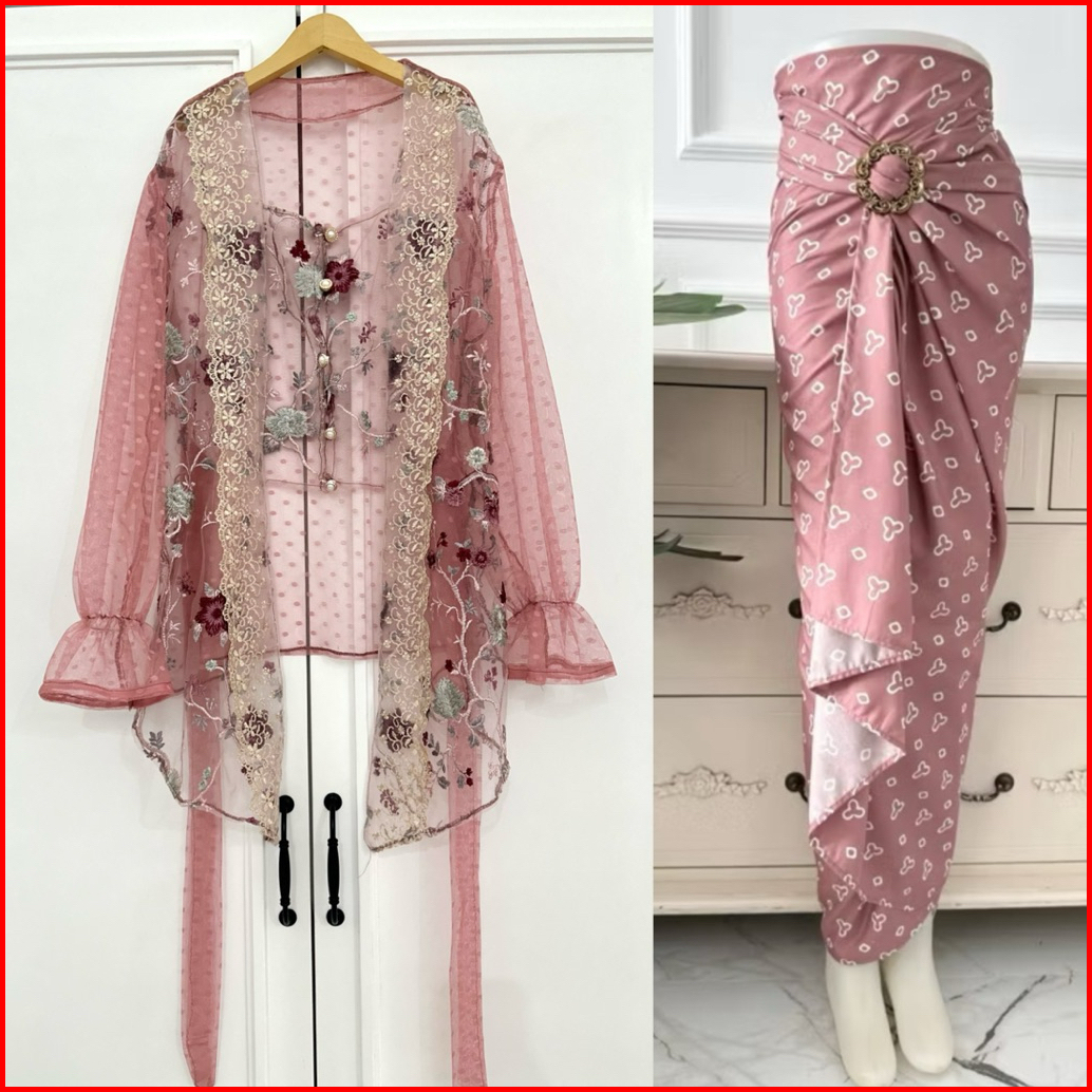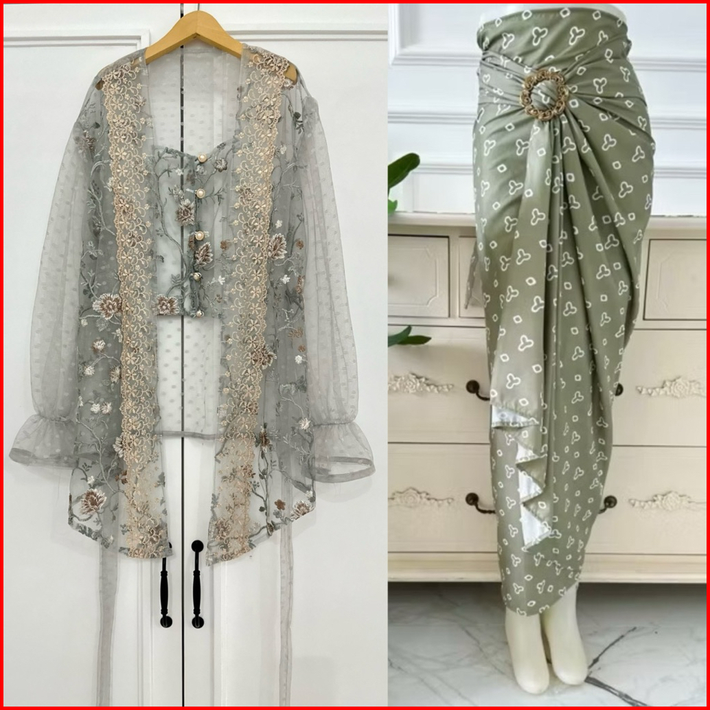 Set Kebaya Kutubaru Tile Garden Bunga-bunga
