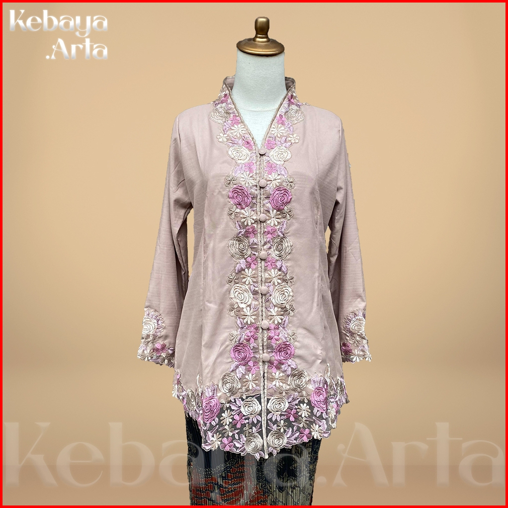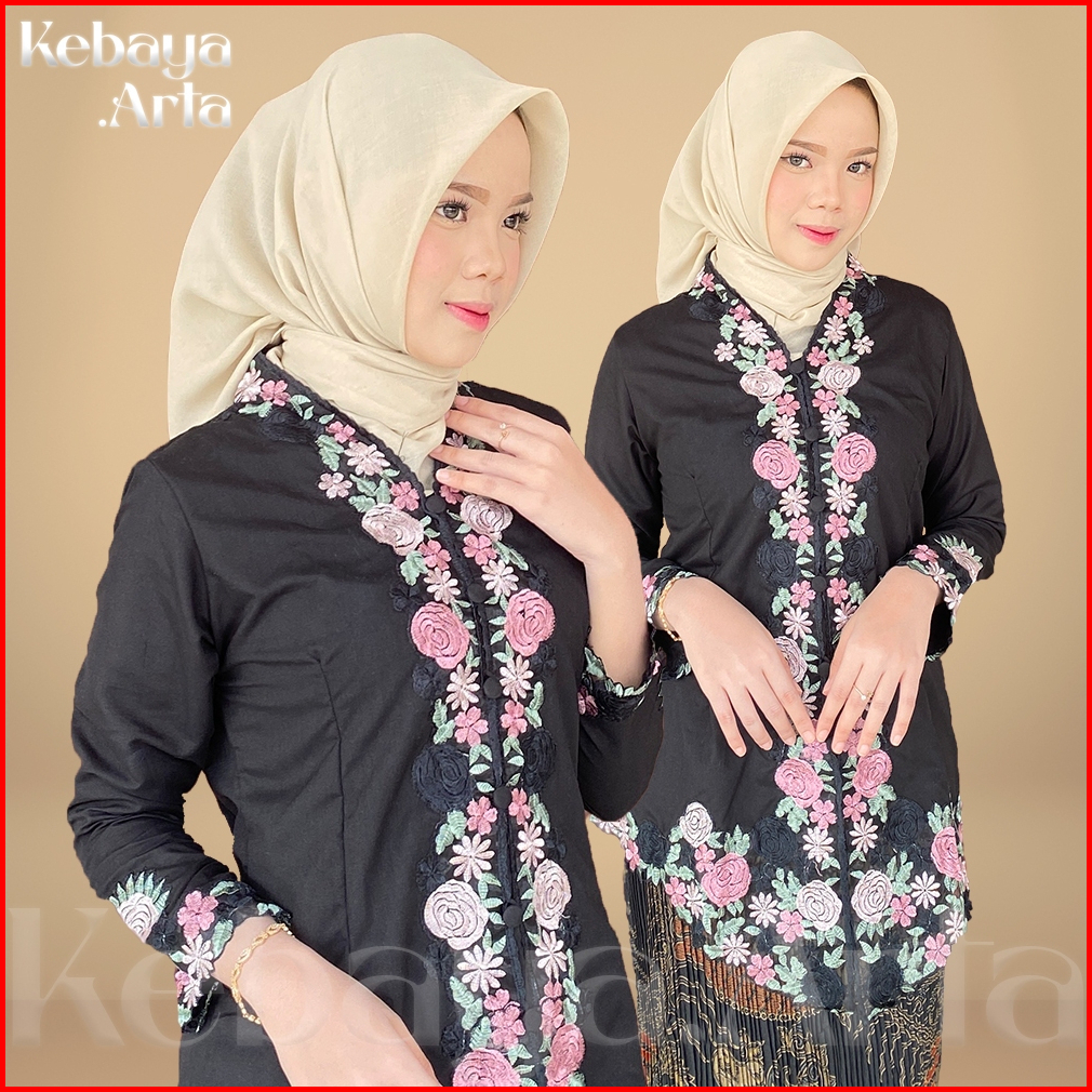 Kebayaarta - Kebaya Encim Bordir Motif Bunga Warna Lengan Panjang Bahan Katun Premium Size S - Jumbo