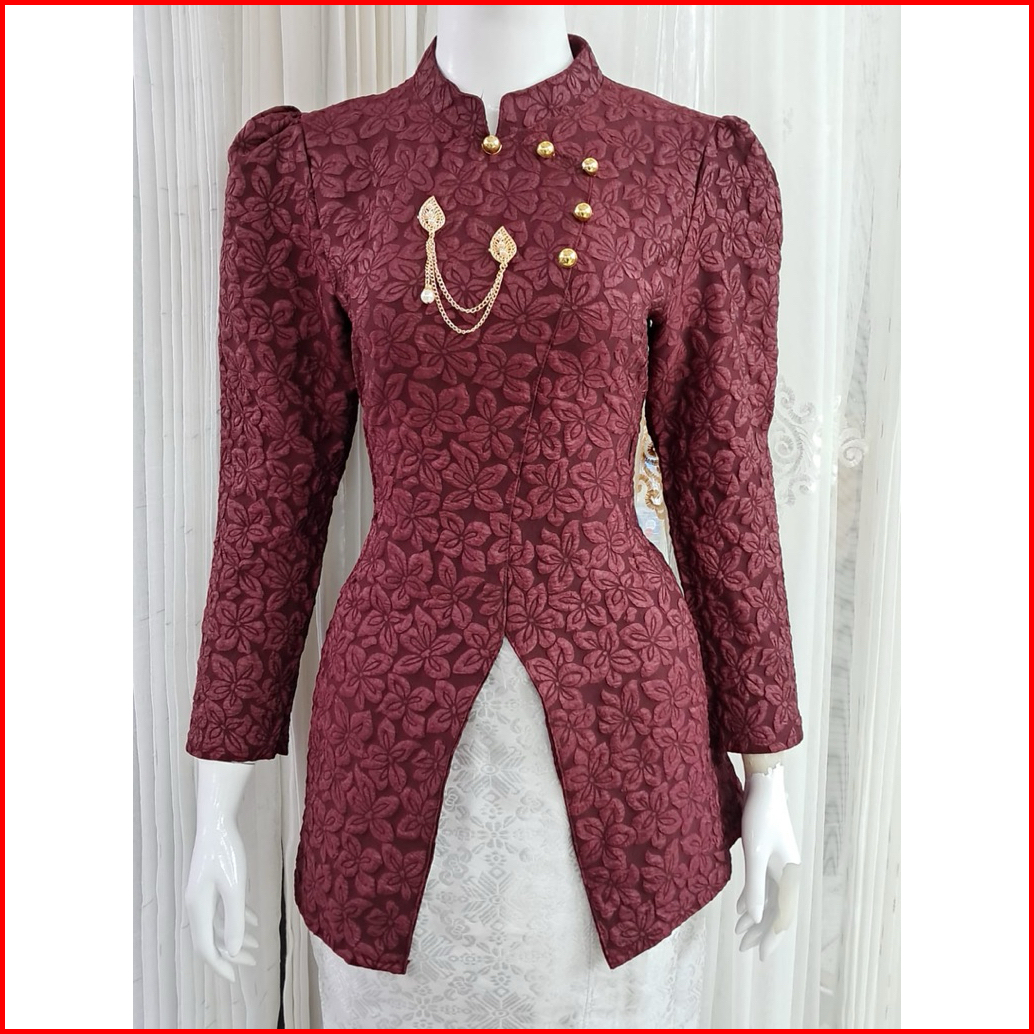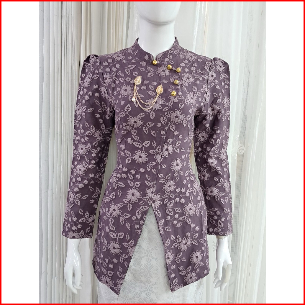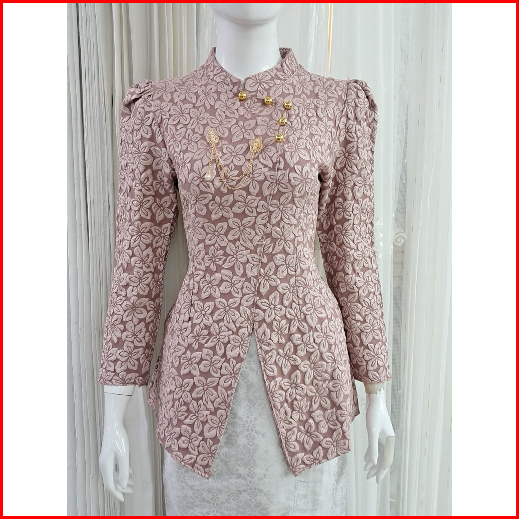 Kebaya Modern Motif Bunga Timbul Kancing Hias Rantai - Kebaya Wisuda - Kebaya Pesta