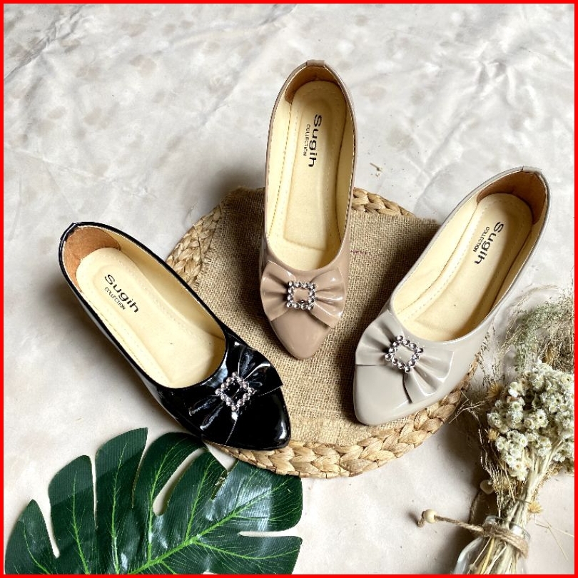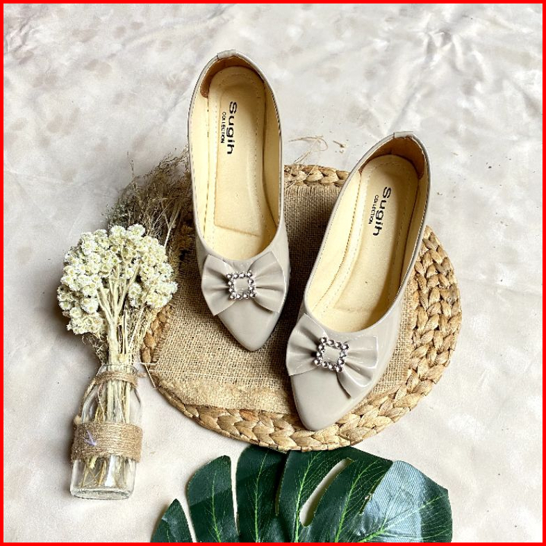 Sandkasse - Hafisa Flatshoes Wanita Glossy Pita Kupu Kotak Non Slip