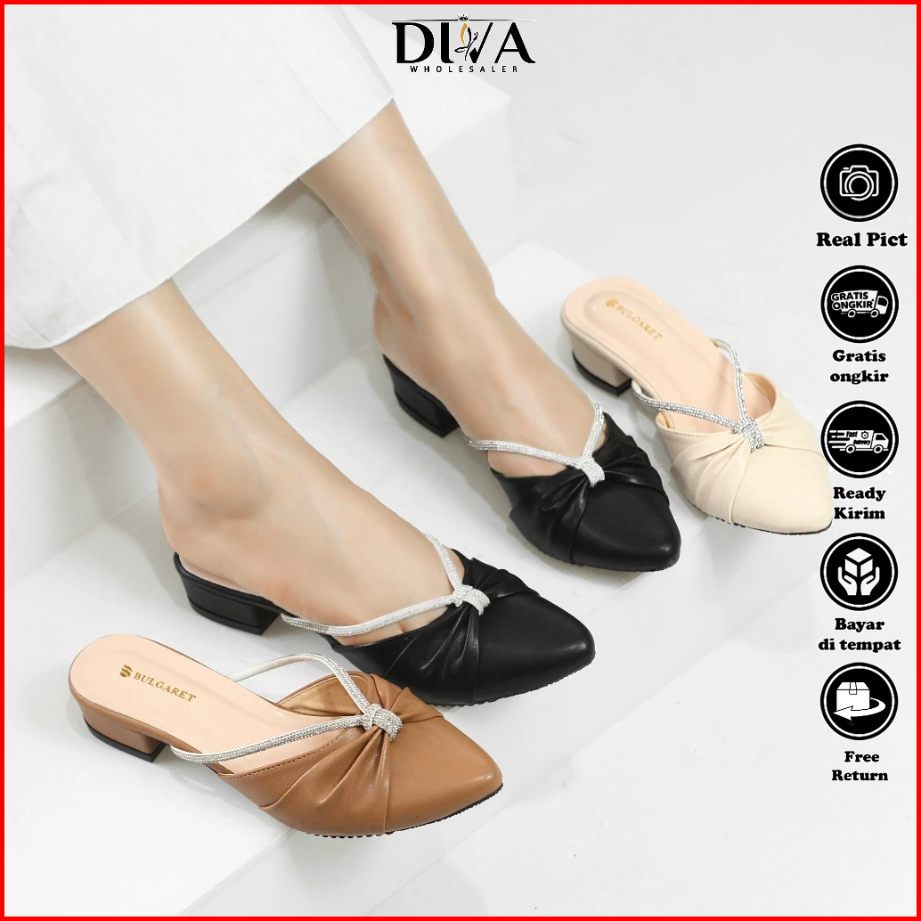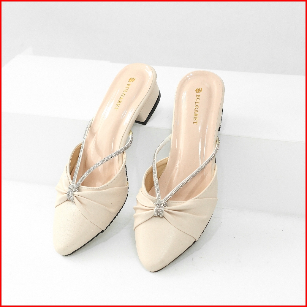 Sandal Wanita Heels Mules Hak 3cm Elegan Kekinian Dn 11